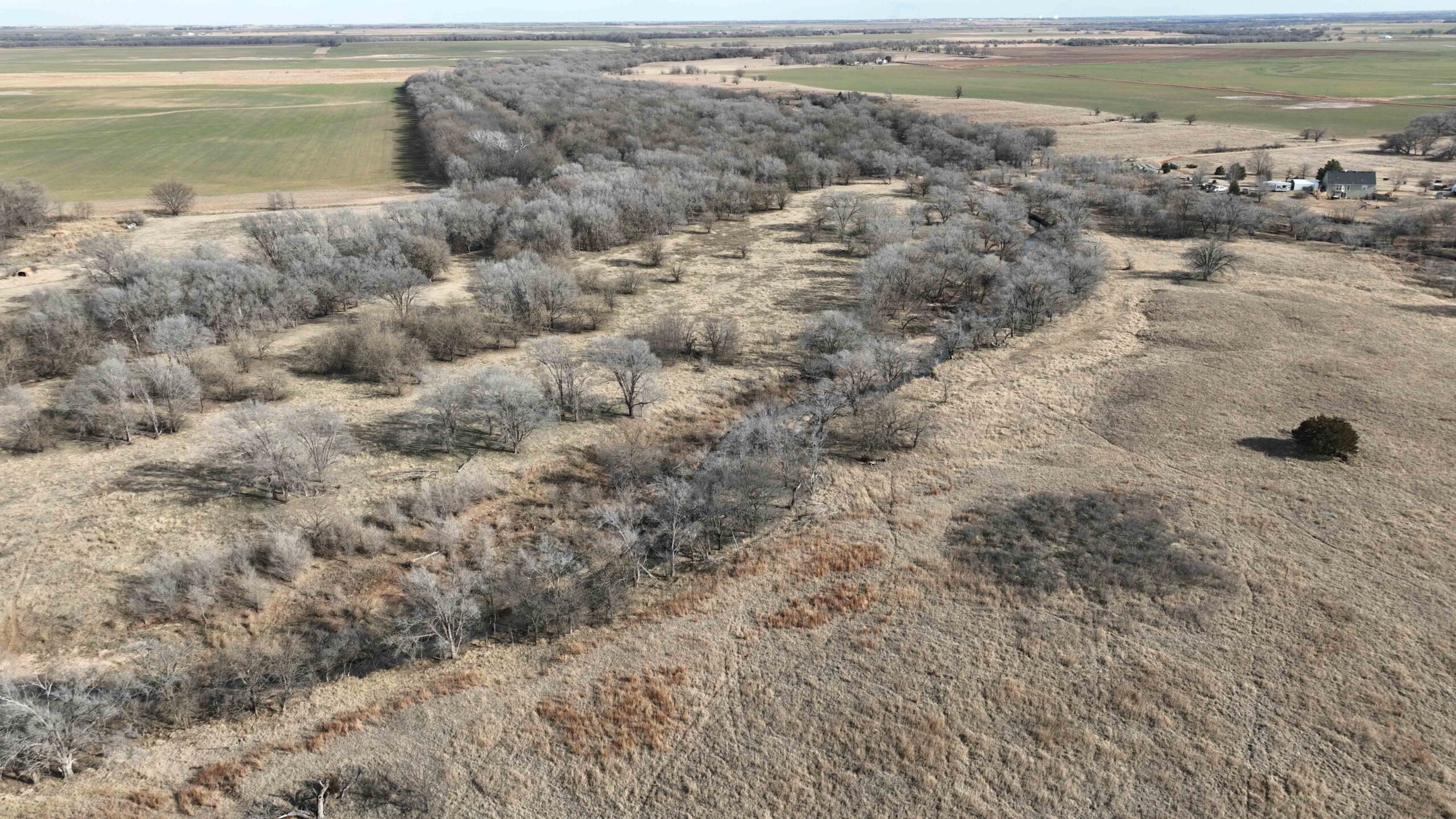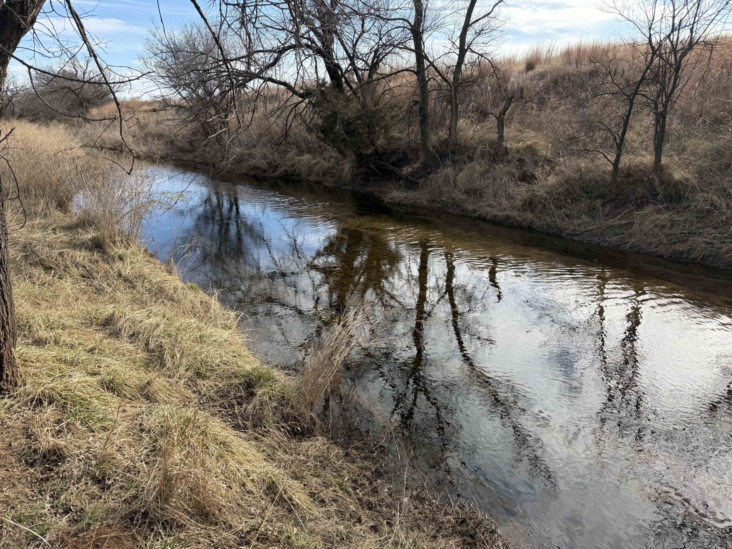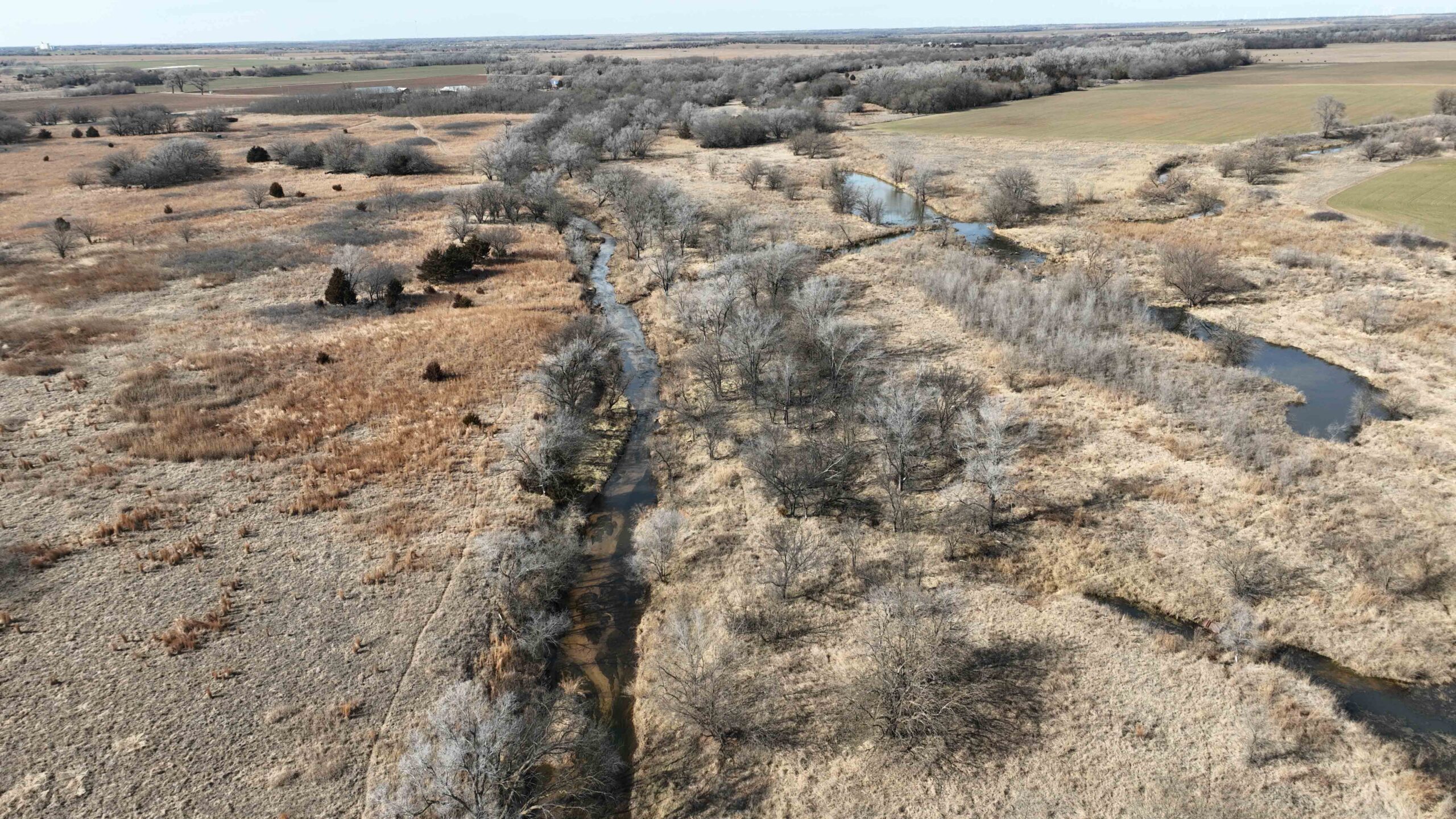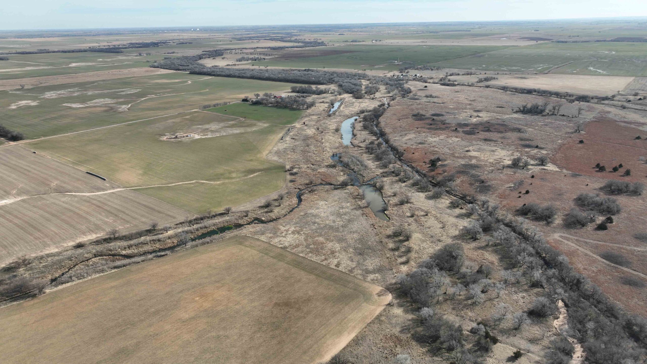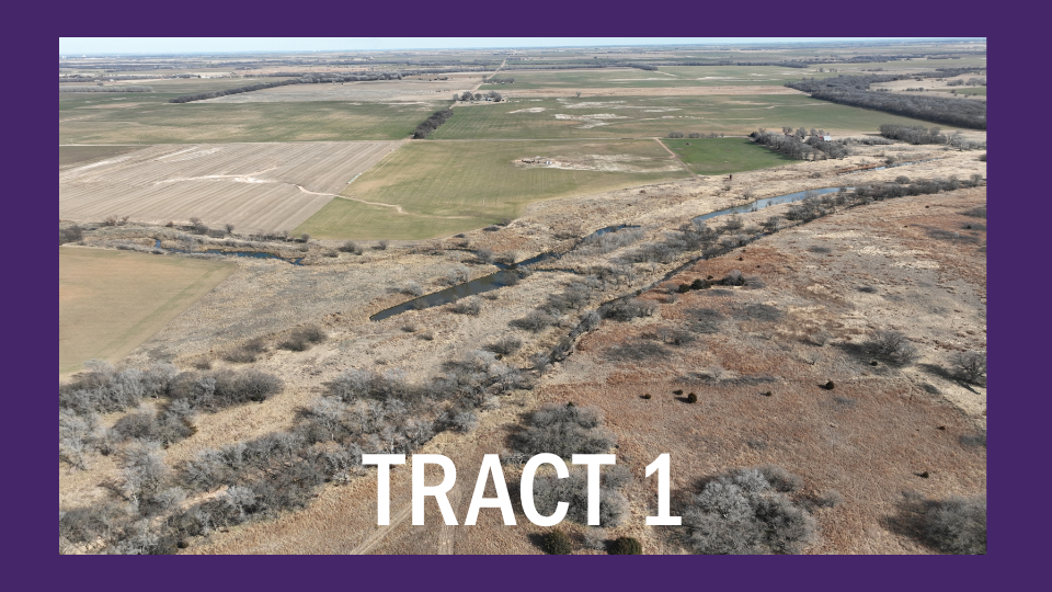 Approximately 55± acres of productive cropland are currently planted to wheat. The remaining 25± acres of grassland, enhanced by Bluff Creek, mature timber, and a small pond, create ideal habitat for whitetail deer and turkey. A balanced tract for both income and recreation.
