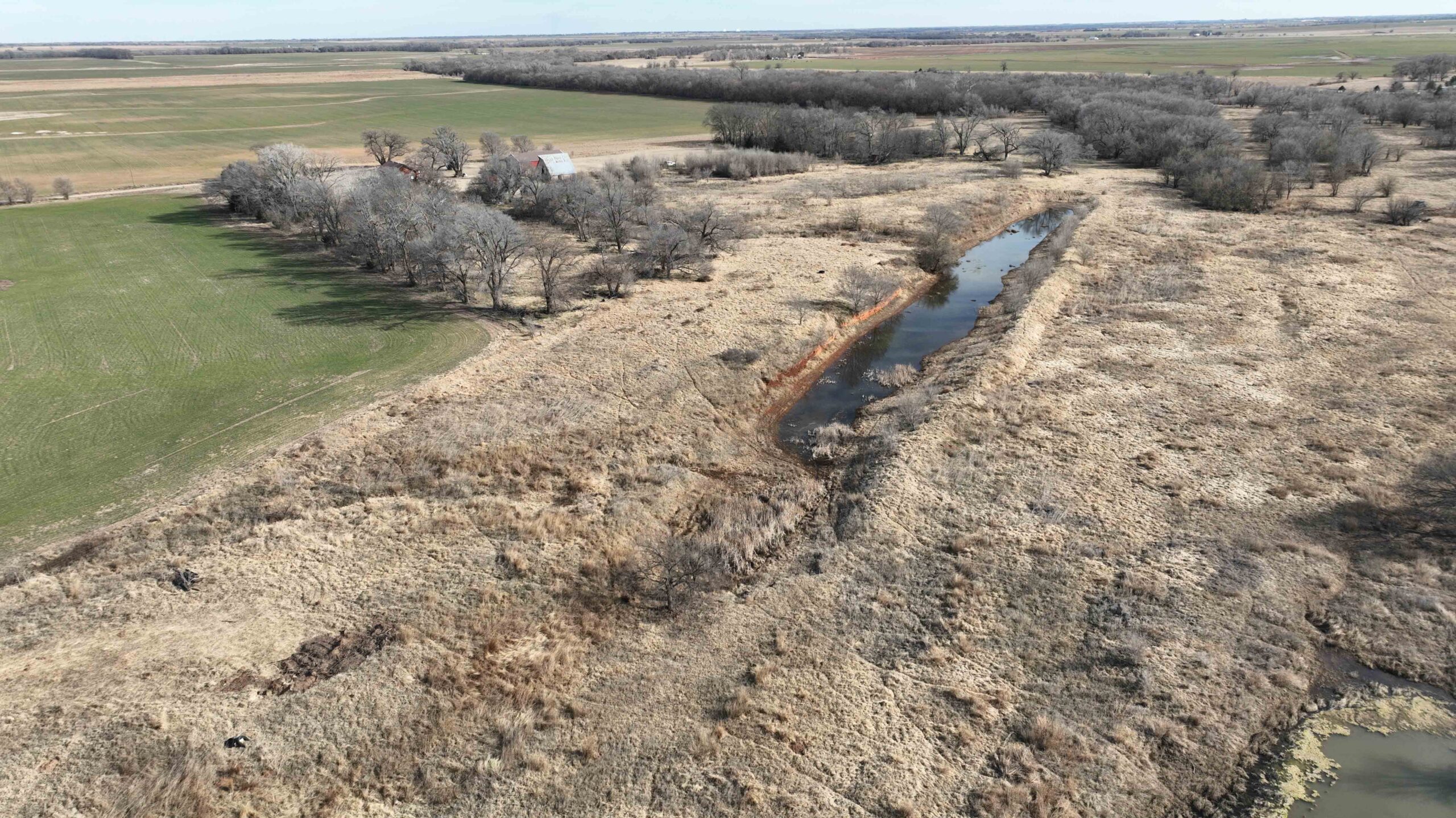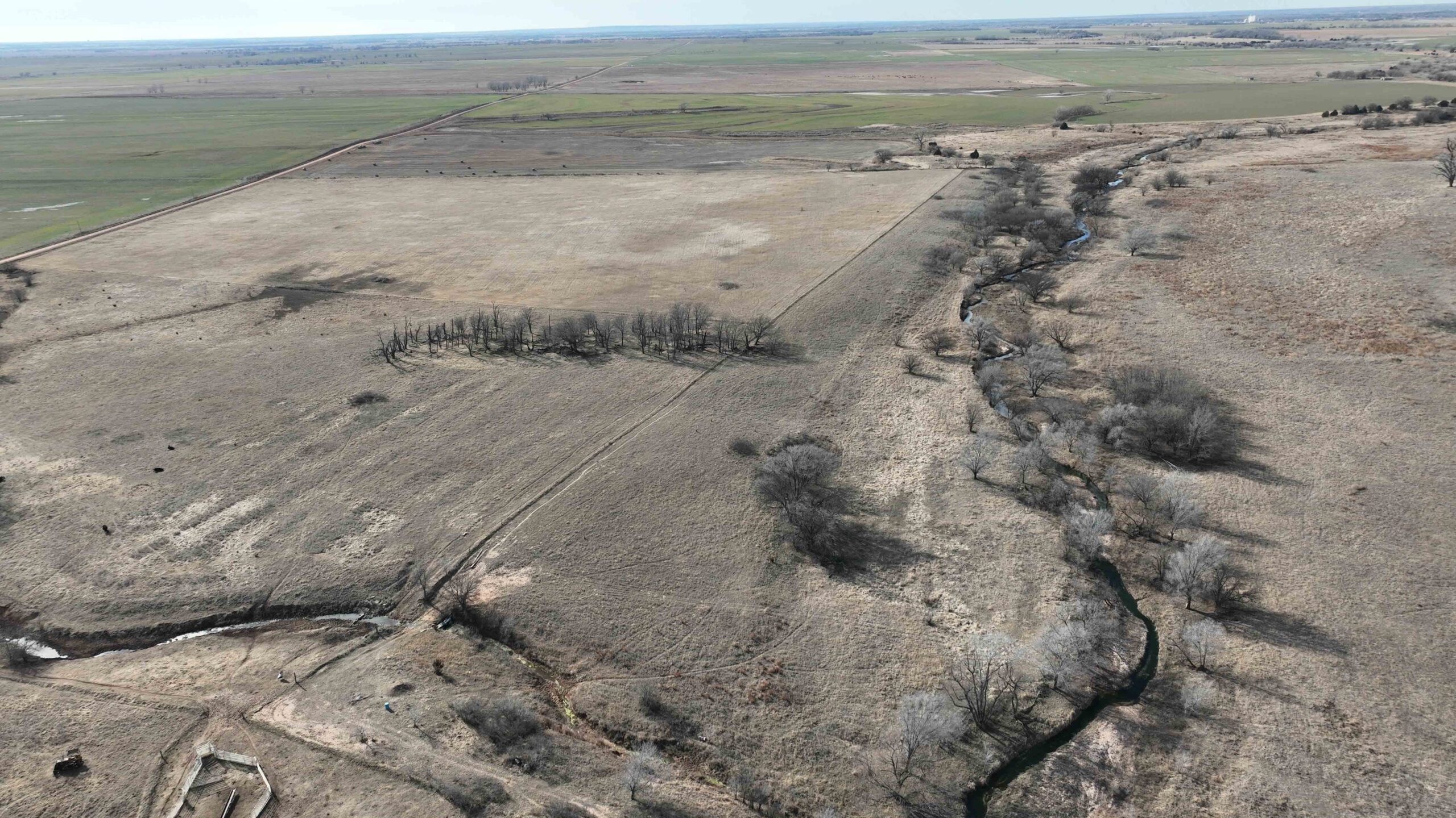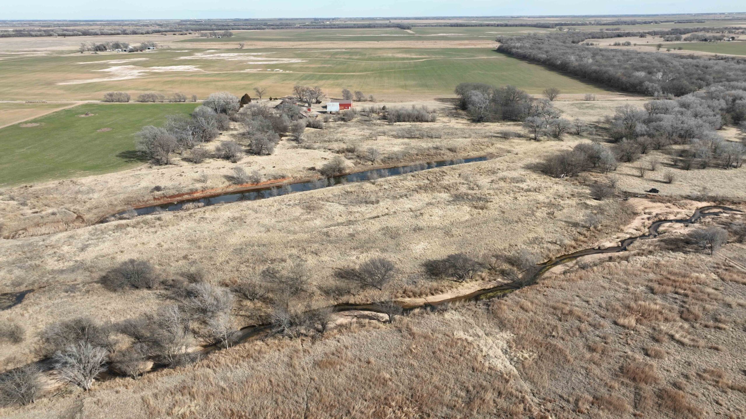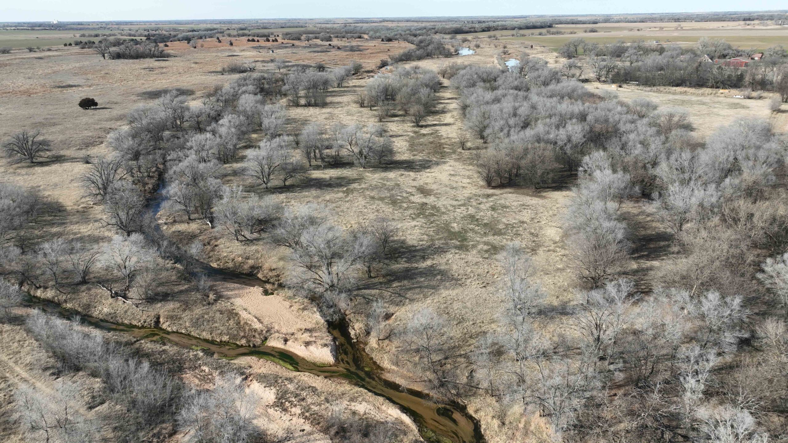 Approximately 55± acres of productive cropland are currently planted to wheat. The remaining 25± acres of grassland, enhanced by Bluff Creek, mature timber, and a small pond, create ideal habitat for whitetail deer and turkey. A balanced tract for both income and recreation.