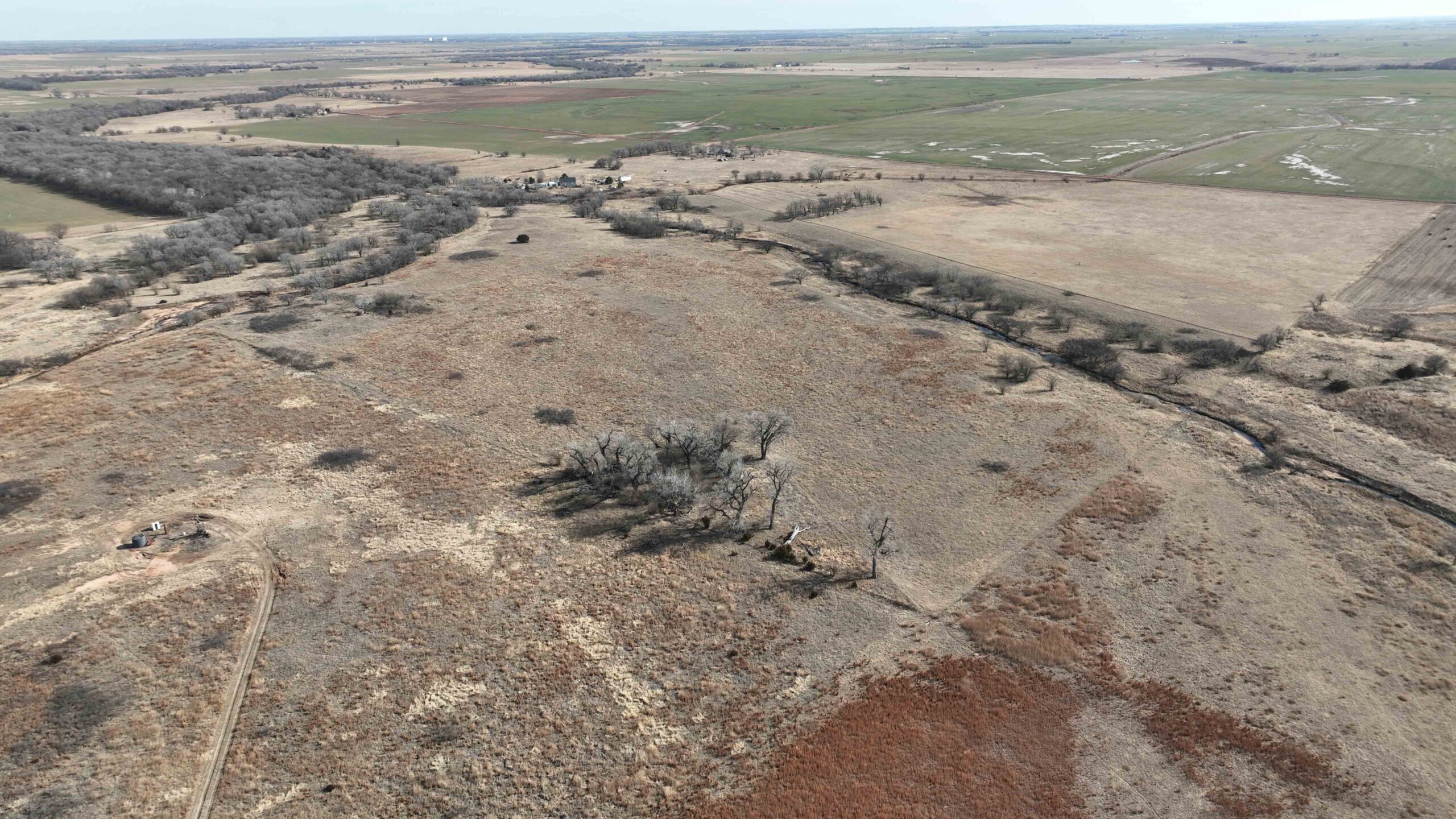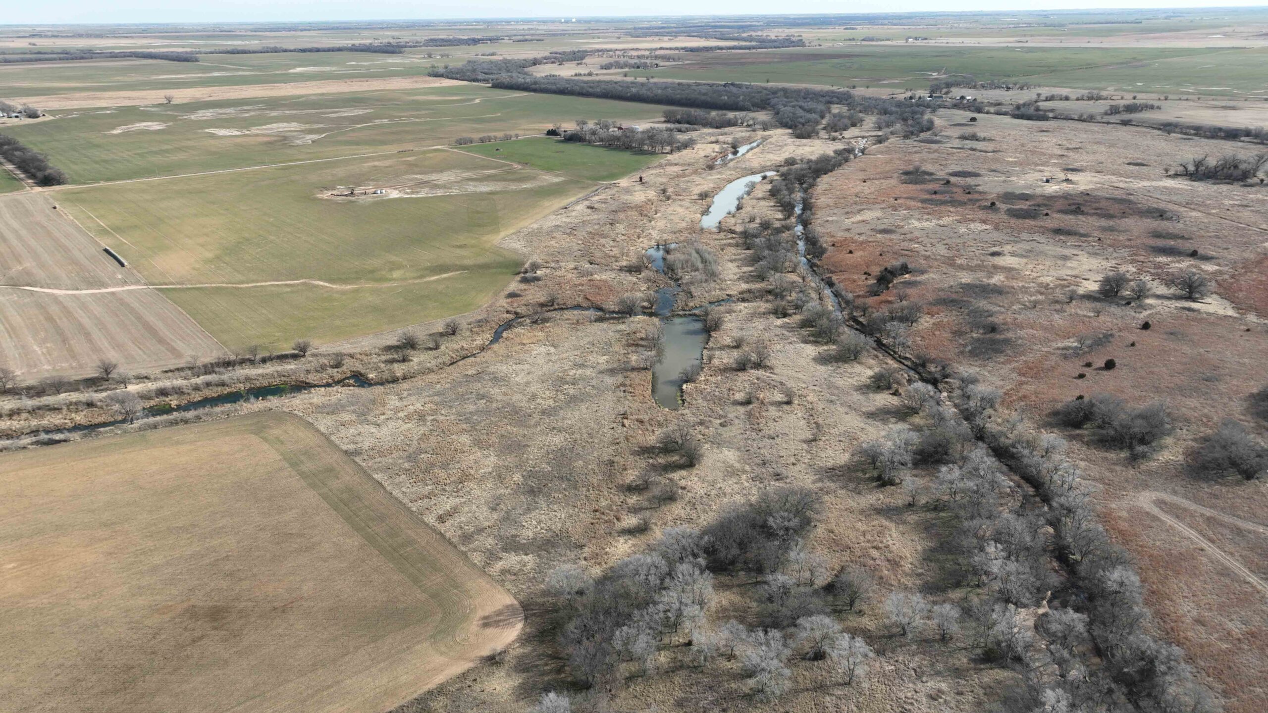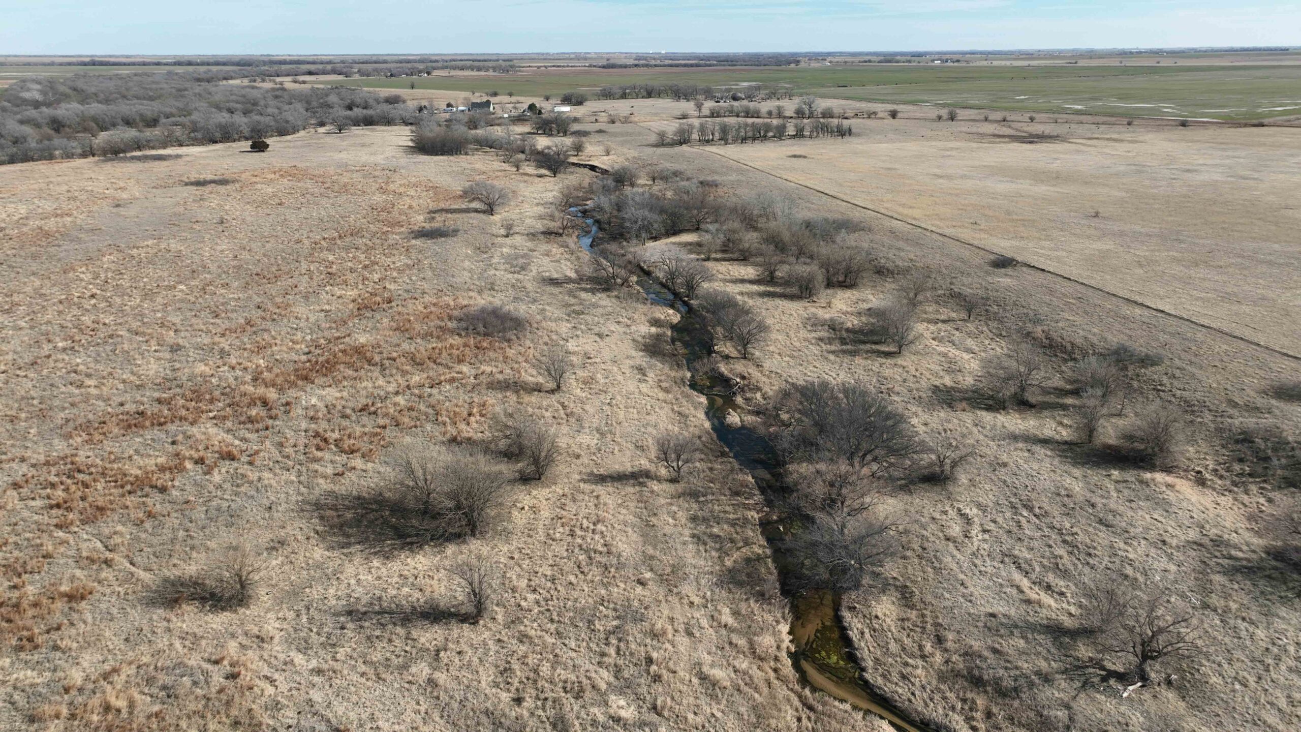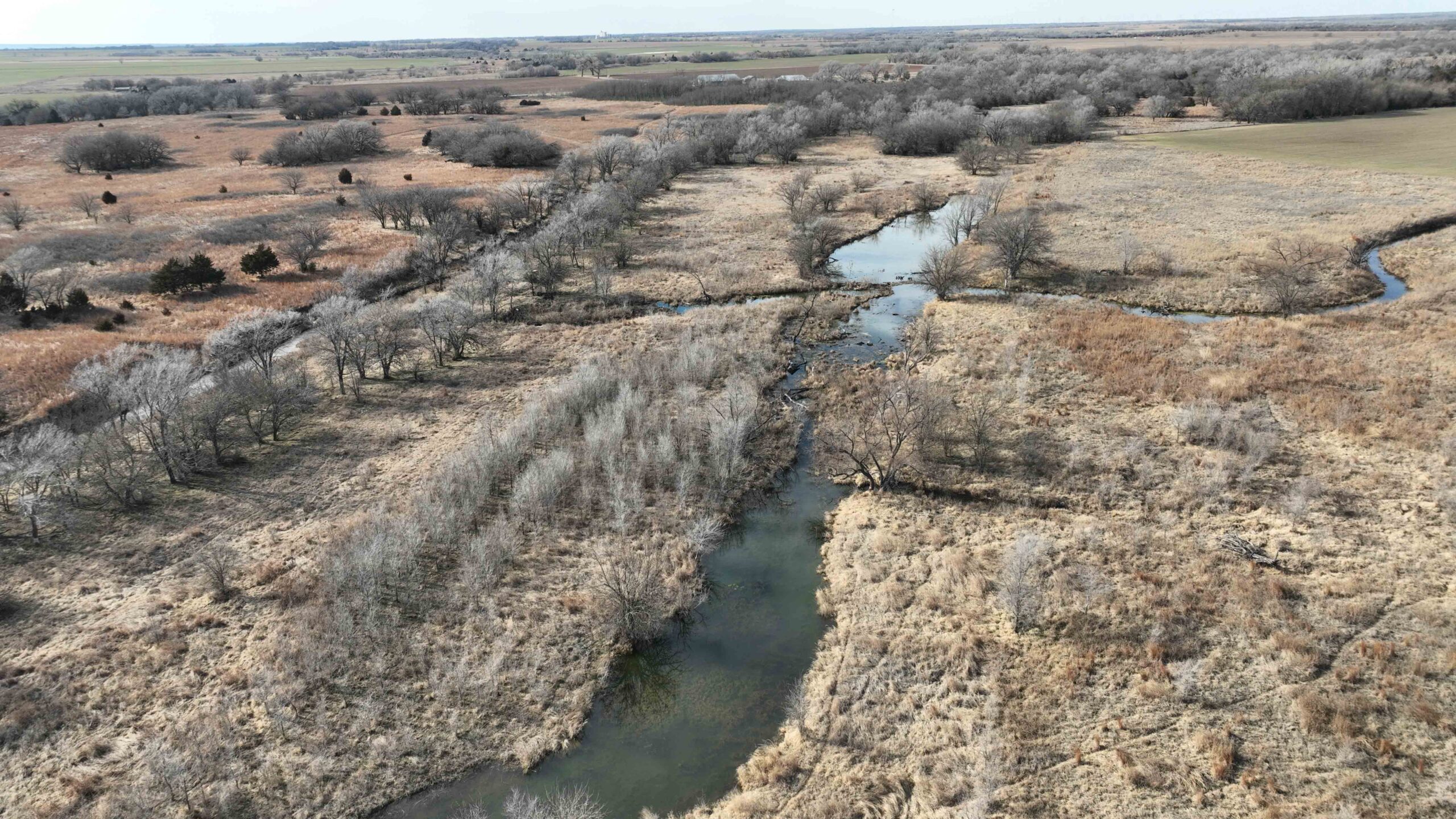 Approximately 55± acres of productive cropland are currently planted to wheat. The remaining 25± acres of grassland, enhanced by Bluff Creek, mature timber, and a small pond, create ideal habitat for whitetail deer and turkey. A balanced tract for both income and recreation.