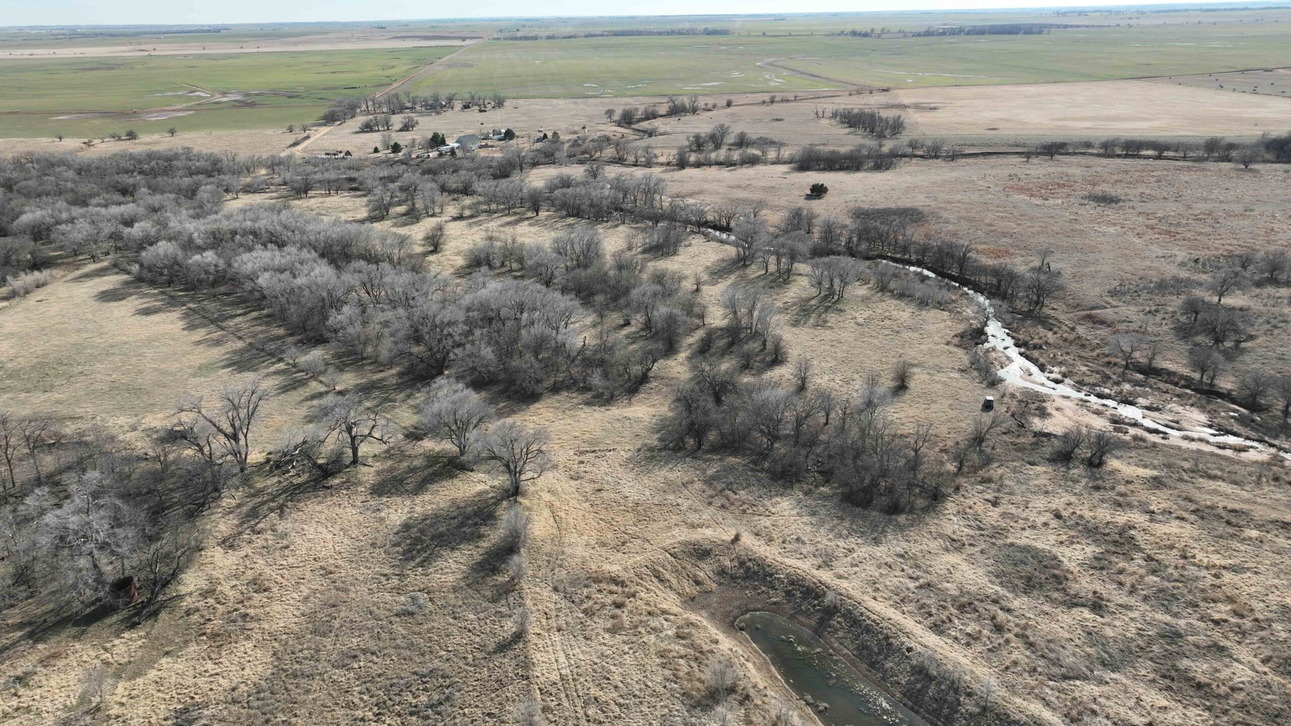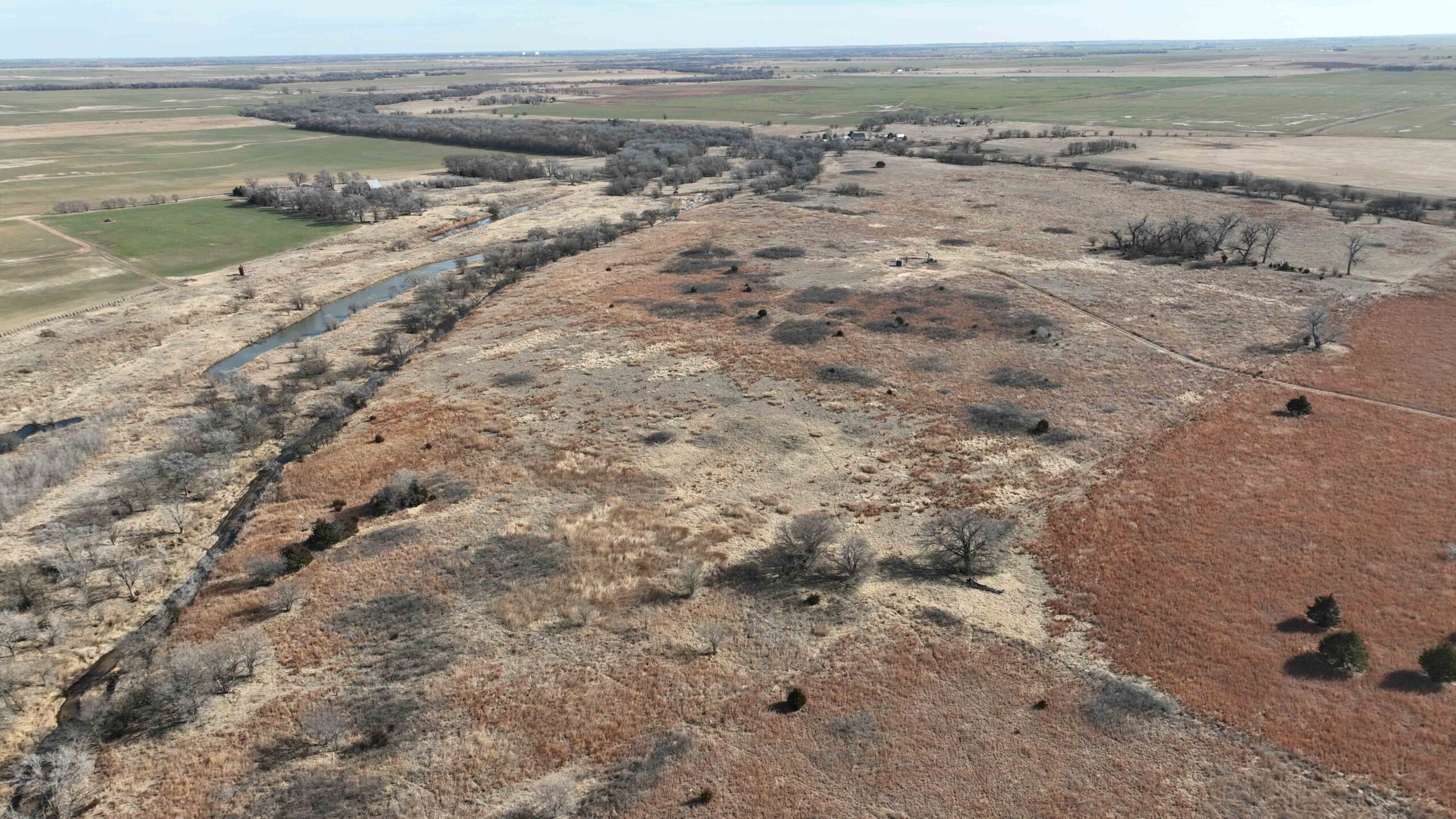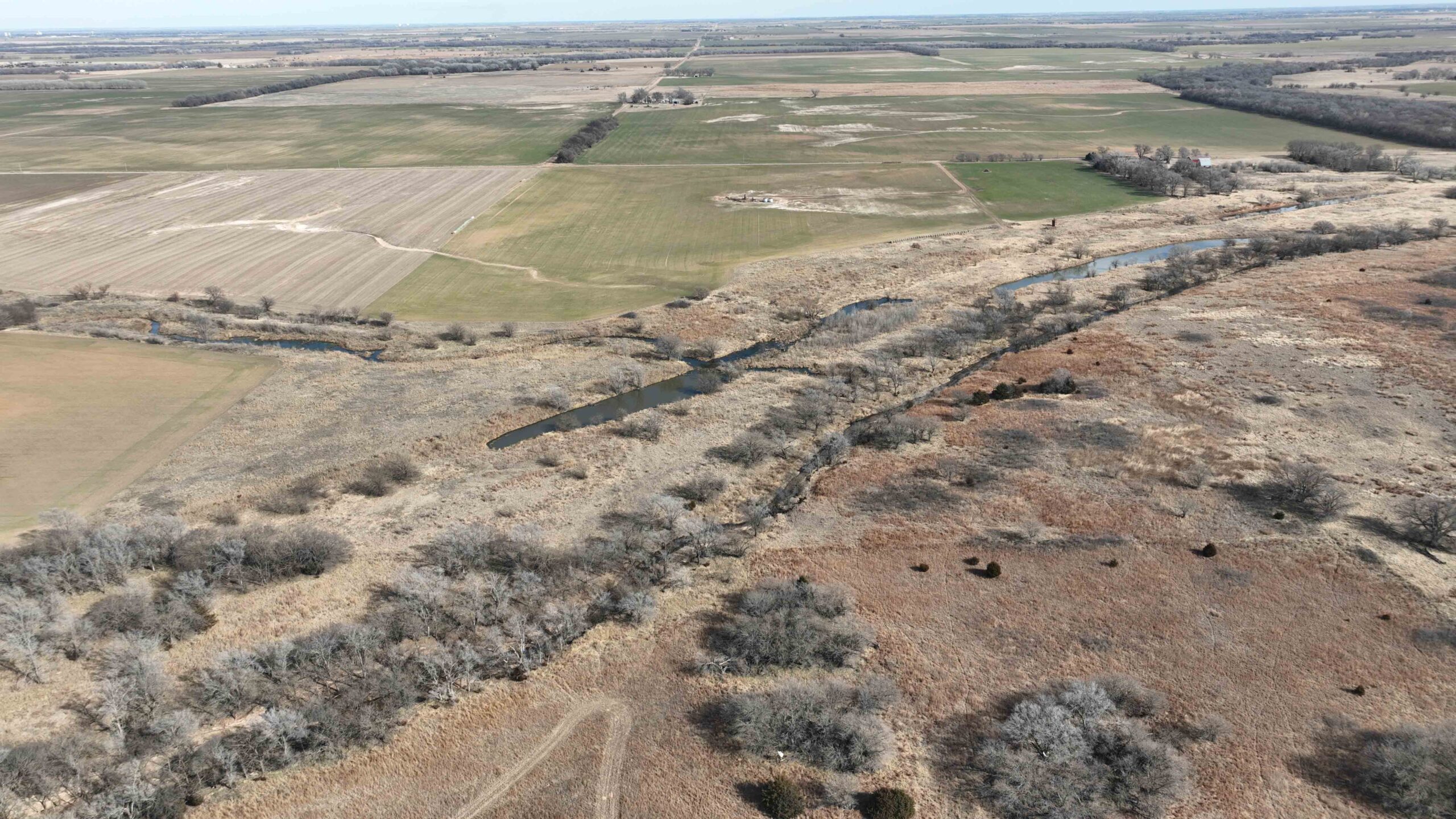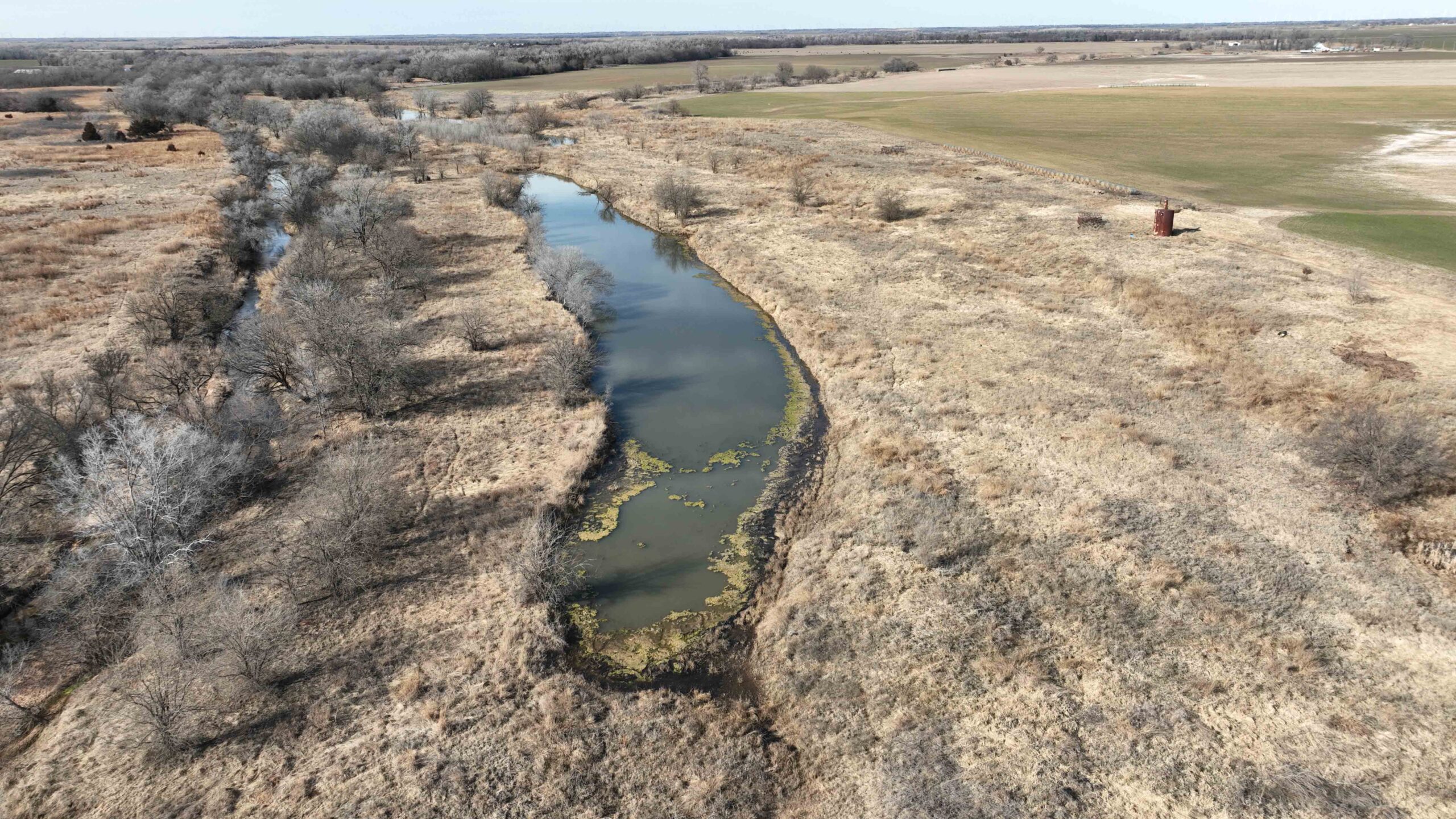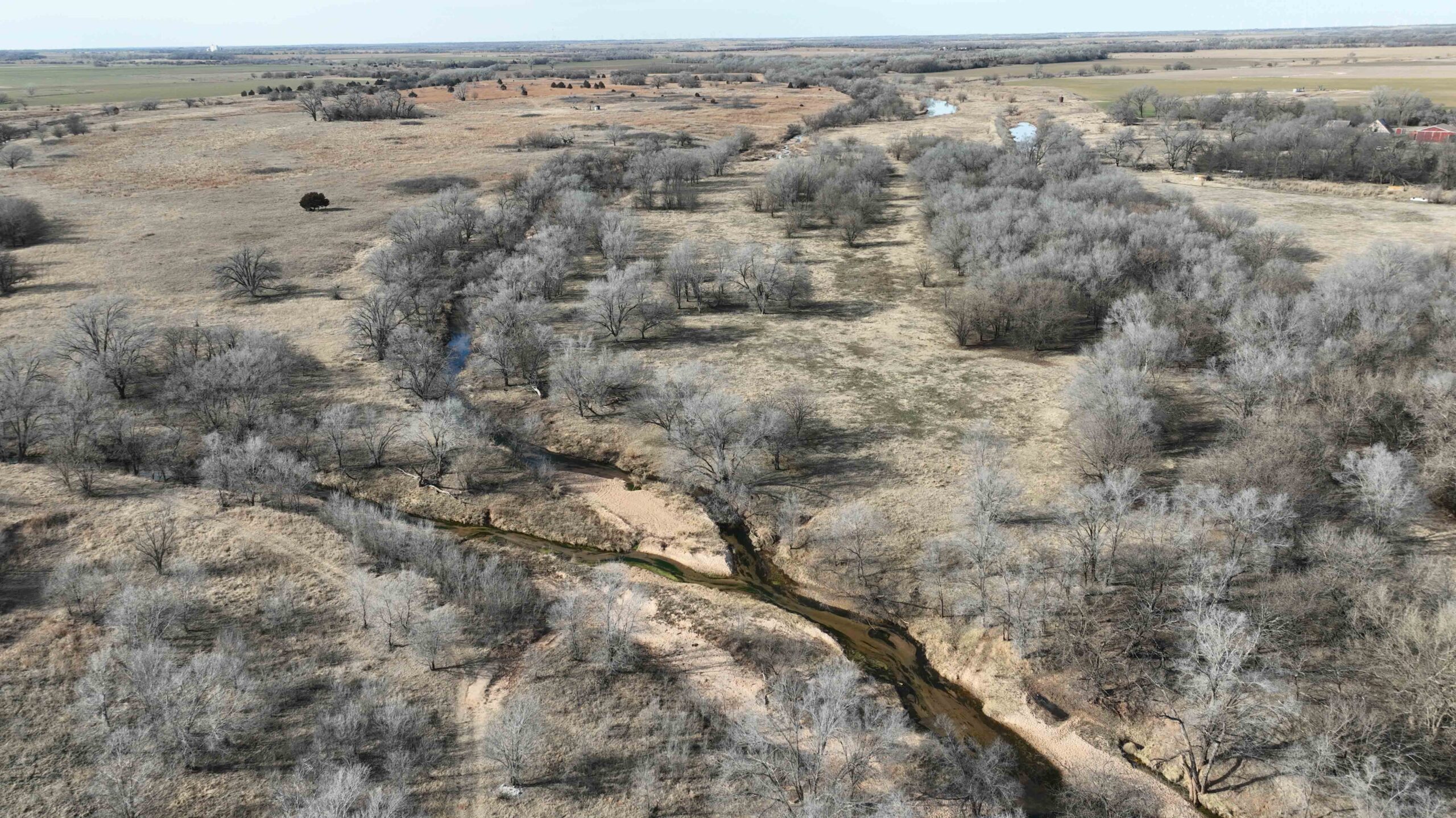 Approximately 55± acres of productive cropland are currently planted to wheat. The remaining 25± acres of grassland, enhanced by Bluff Creek, mature timber, and a small pond, create ideal habitat for whitetail deer and turkey. A balanced tract for both income and recreation.