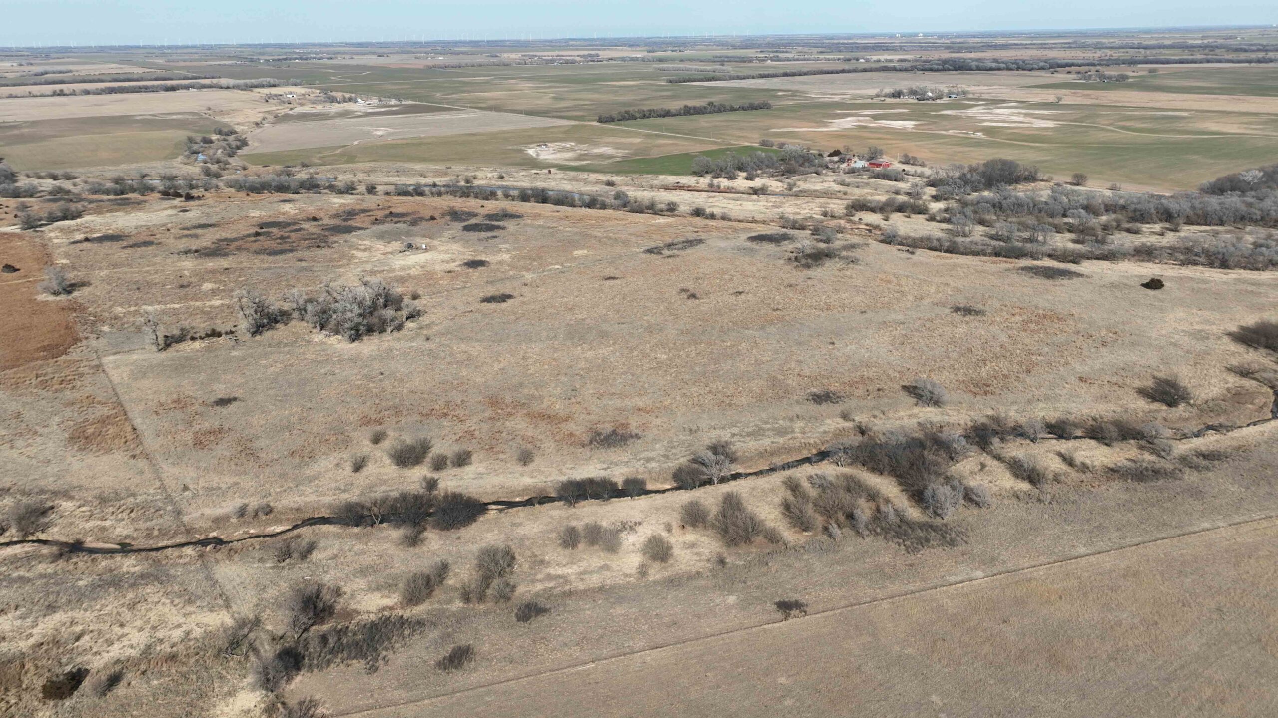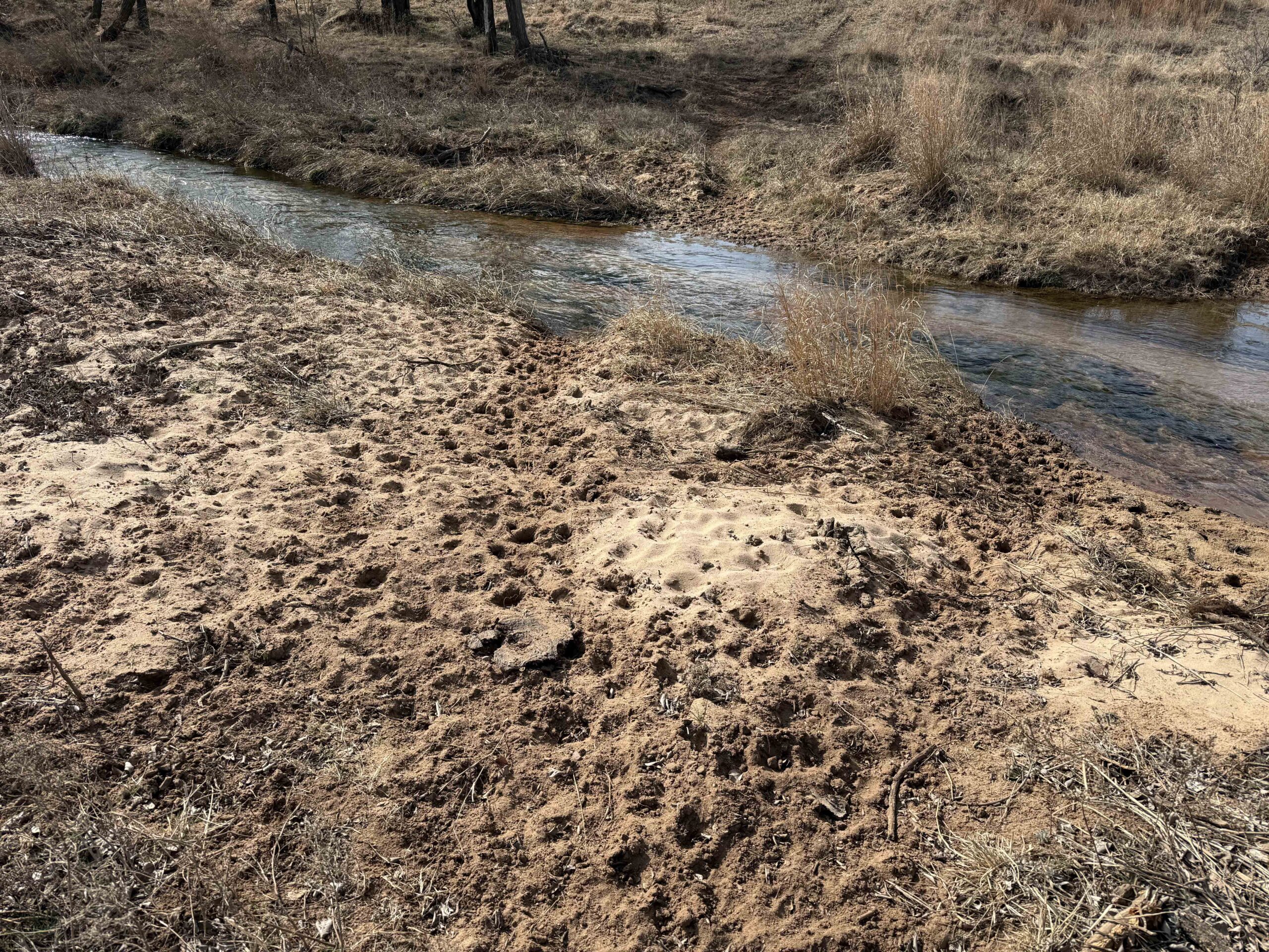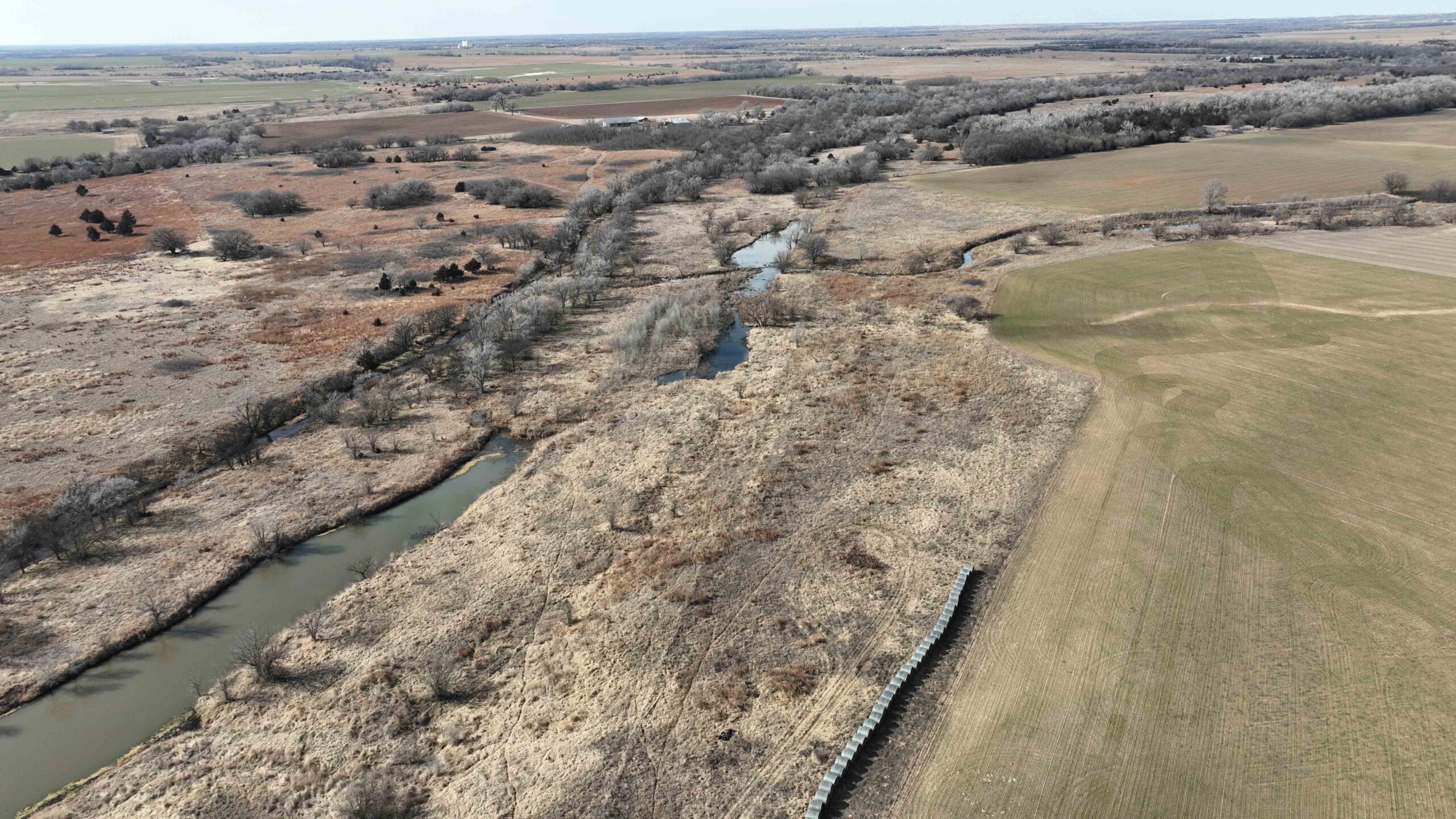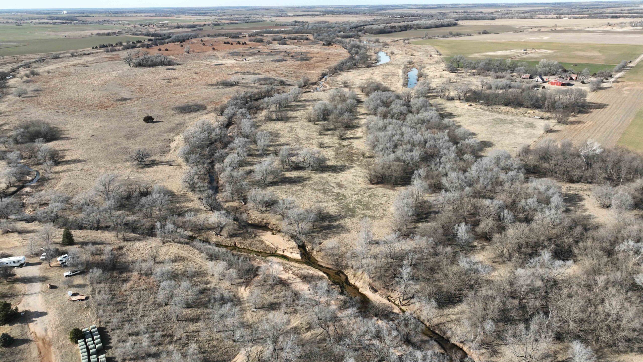 Approximately 55± acres of productive cropland are currently planted to wheat. The remaining 25± acres of grassland, enhanced by Bluff Creek, mature timber, and a small pond, create ideal habitat for whitetail deer and turkey. A balanced tract for both income and recreation.
