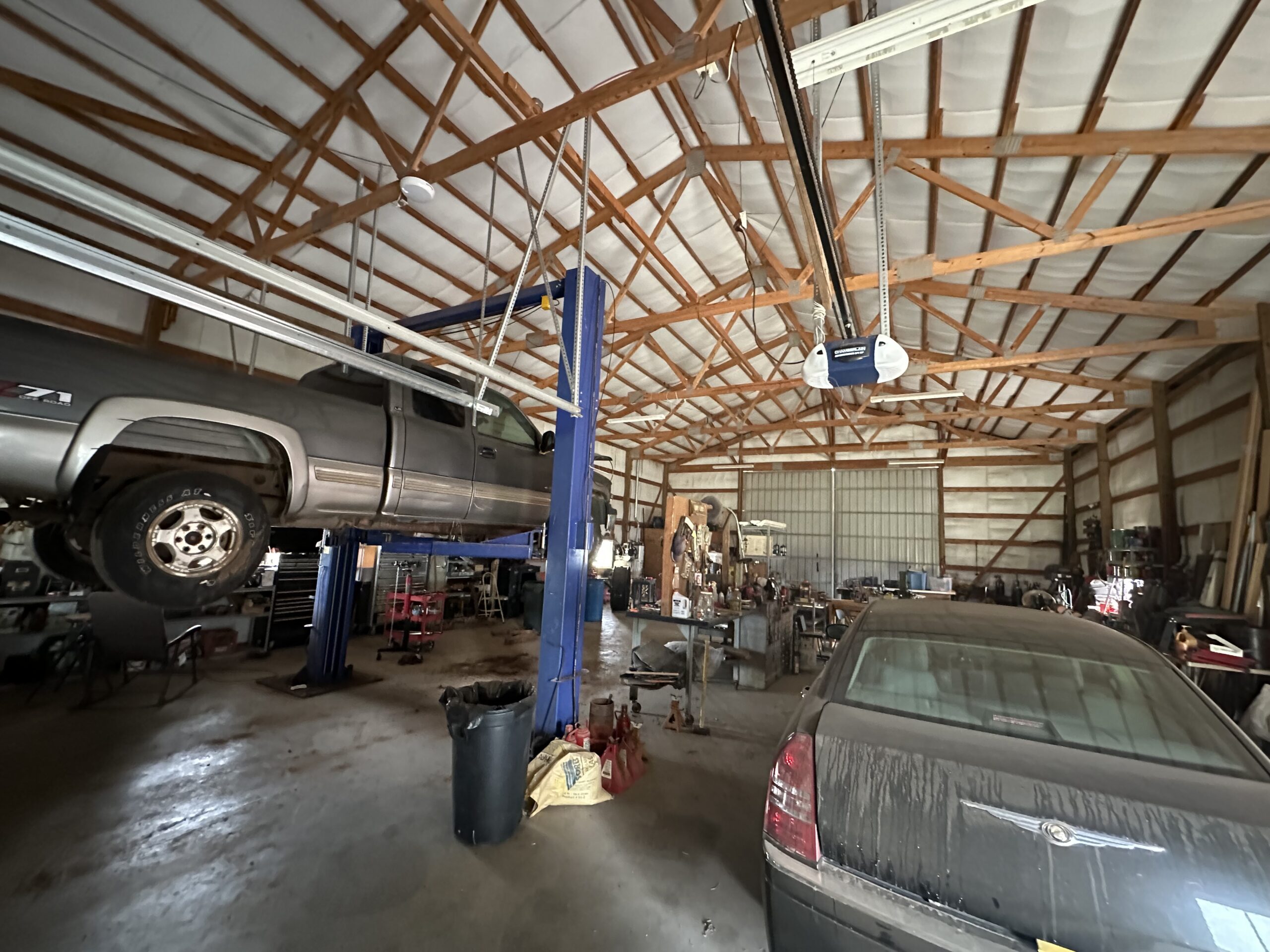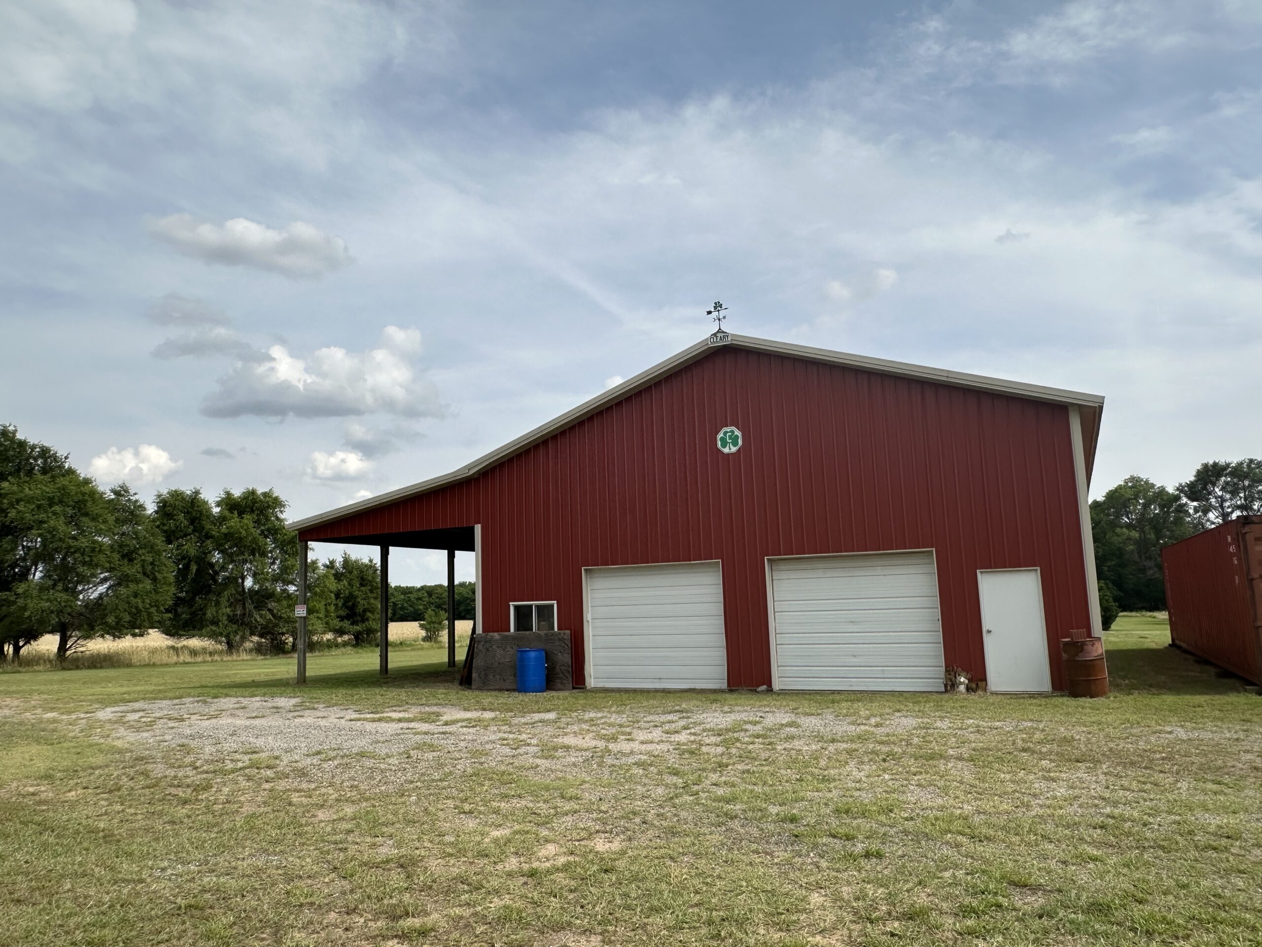 Enjoy rural living with a 1,458 sq. ft. brick home built in 1930 featuring 4 bedrooms and 2 baths, plus a partially finished basement with kitchenette. A large west-facing deck offers peaceful views. The home has a metal roof and is ready for updates to make it your own. Improvements include multiple outbuildings with a substantial 40’ x 60’ x 18’ metal building constructed in 2009, complete with heated floor and a car lift. A small pond sits on the west side of the property.