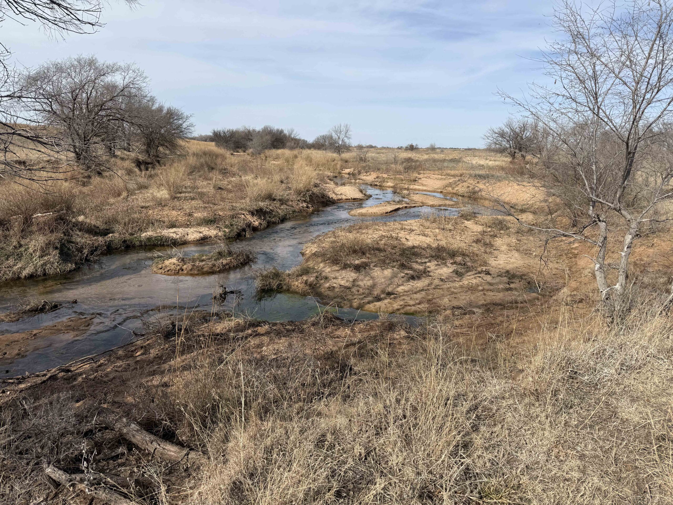 Bluff Creek winds through this native grass tract dotted with mature trees and exceptional cover. A 1½-acre stocked pond provides year-round water and adds exciting duck hunting opportunities. This is a sportsman’s dream with excellent wildlife traffic and natural beauty.
