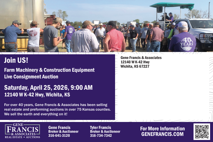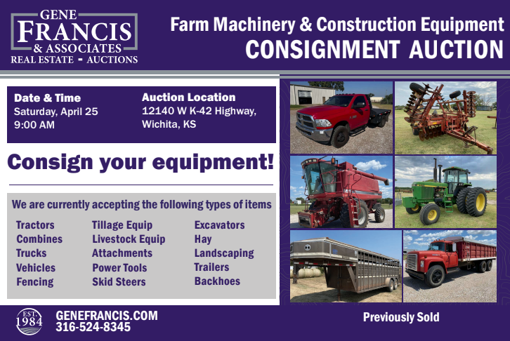 Kylee Francis, Auction Manager: 316-524-8345 or [email protected]