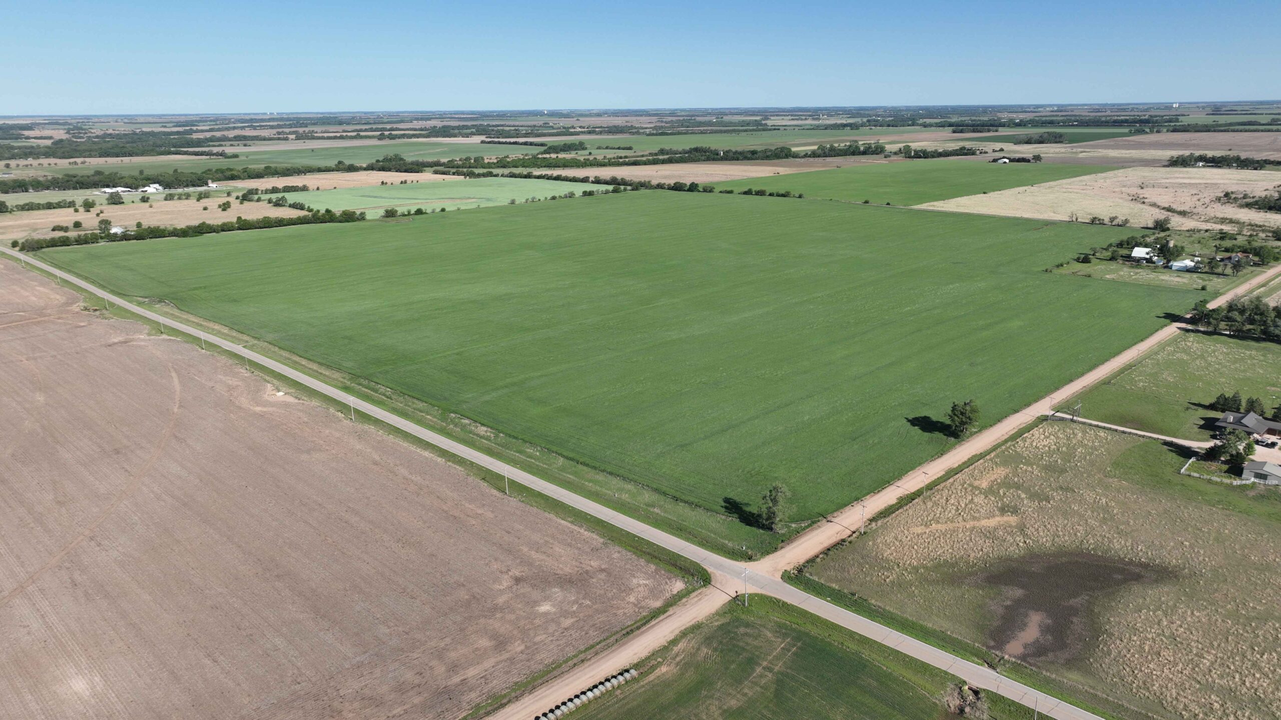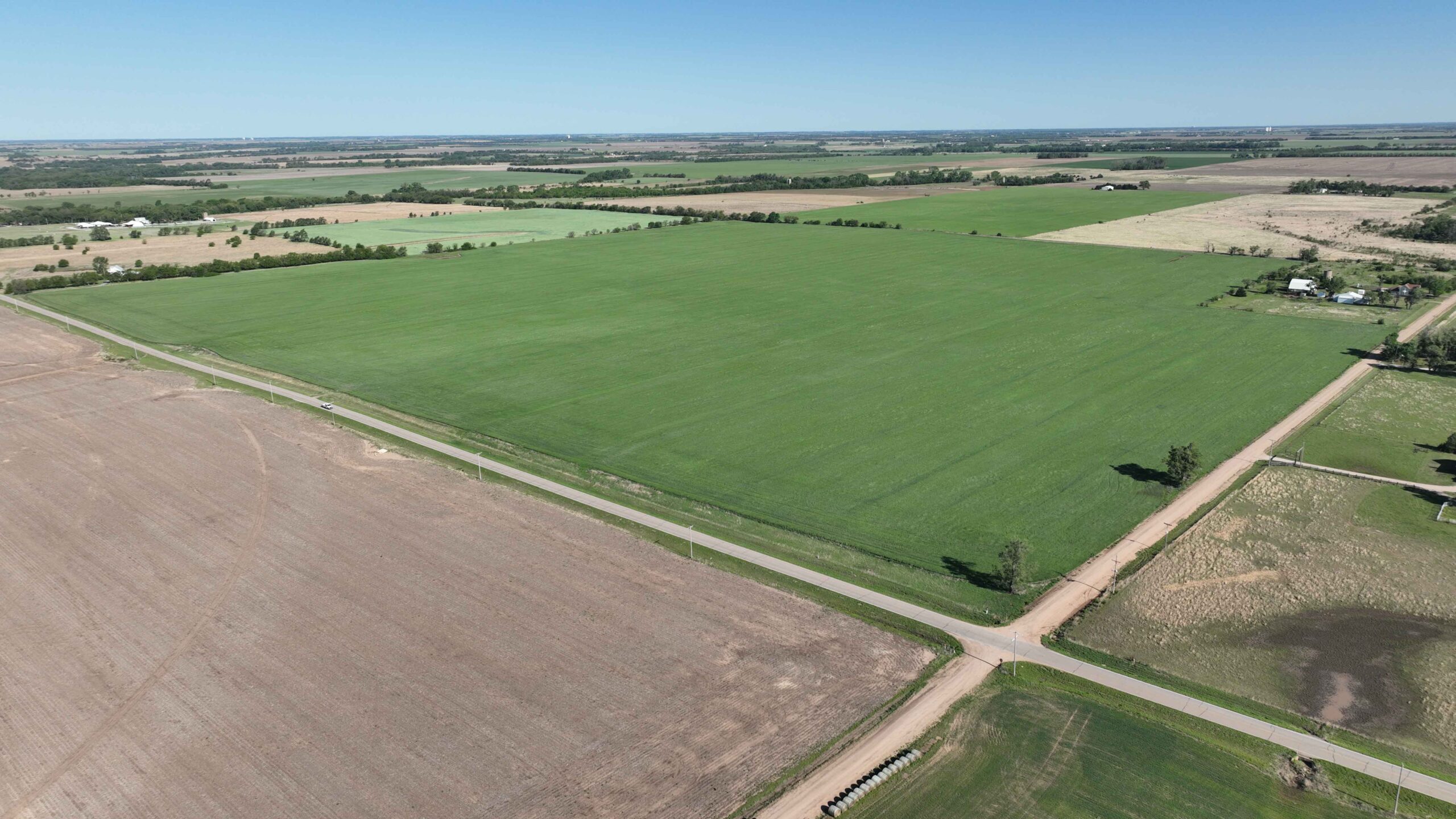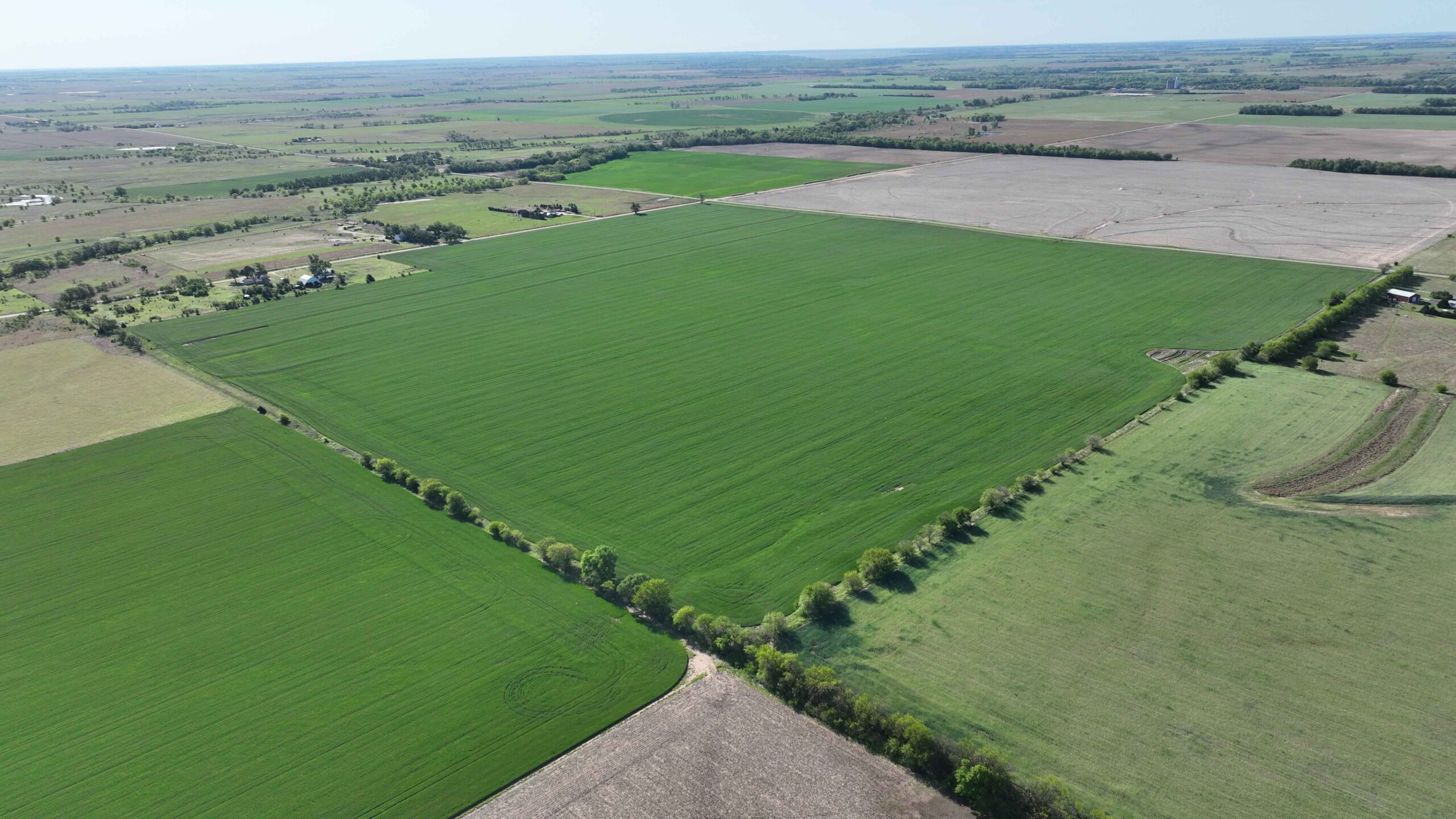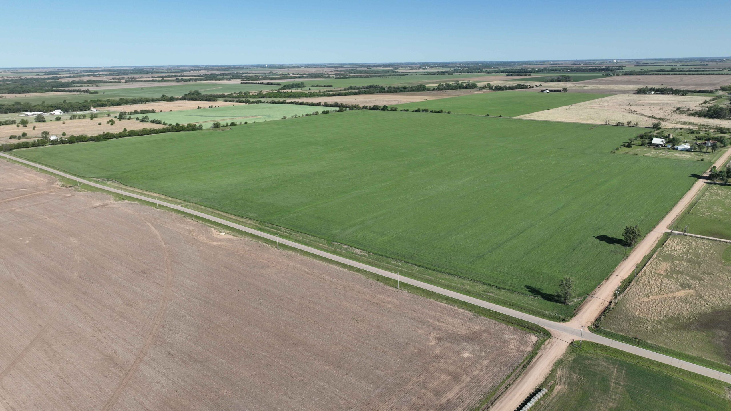 The property features soils suitable for row crop production and a layout that supports efficient farming practices. The NCCPI soil rating is 57.19, with a strong majority of Class II soils, including Shellabarger Sandy Loam, Nalim Loam, and Shellabarger–Nalim Complex. Currently planted to wheat, the tract presents an opportunity to begin a farm operation, expand production, or invest in Kansas farmland.
