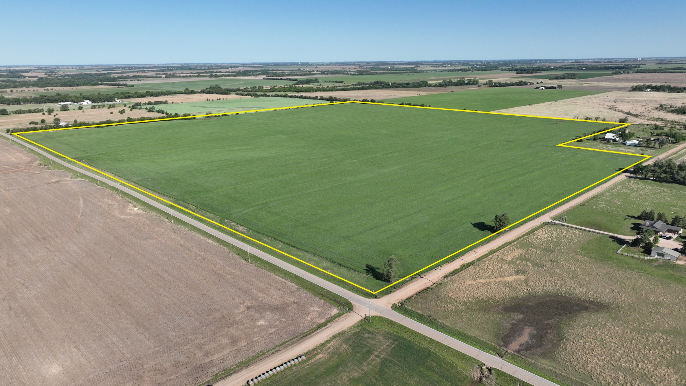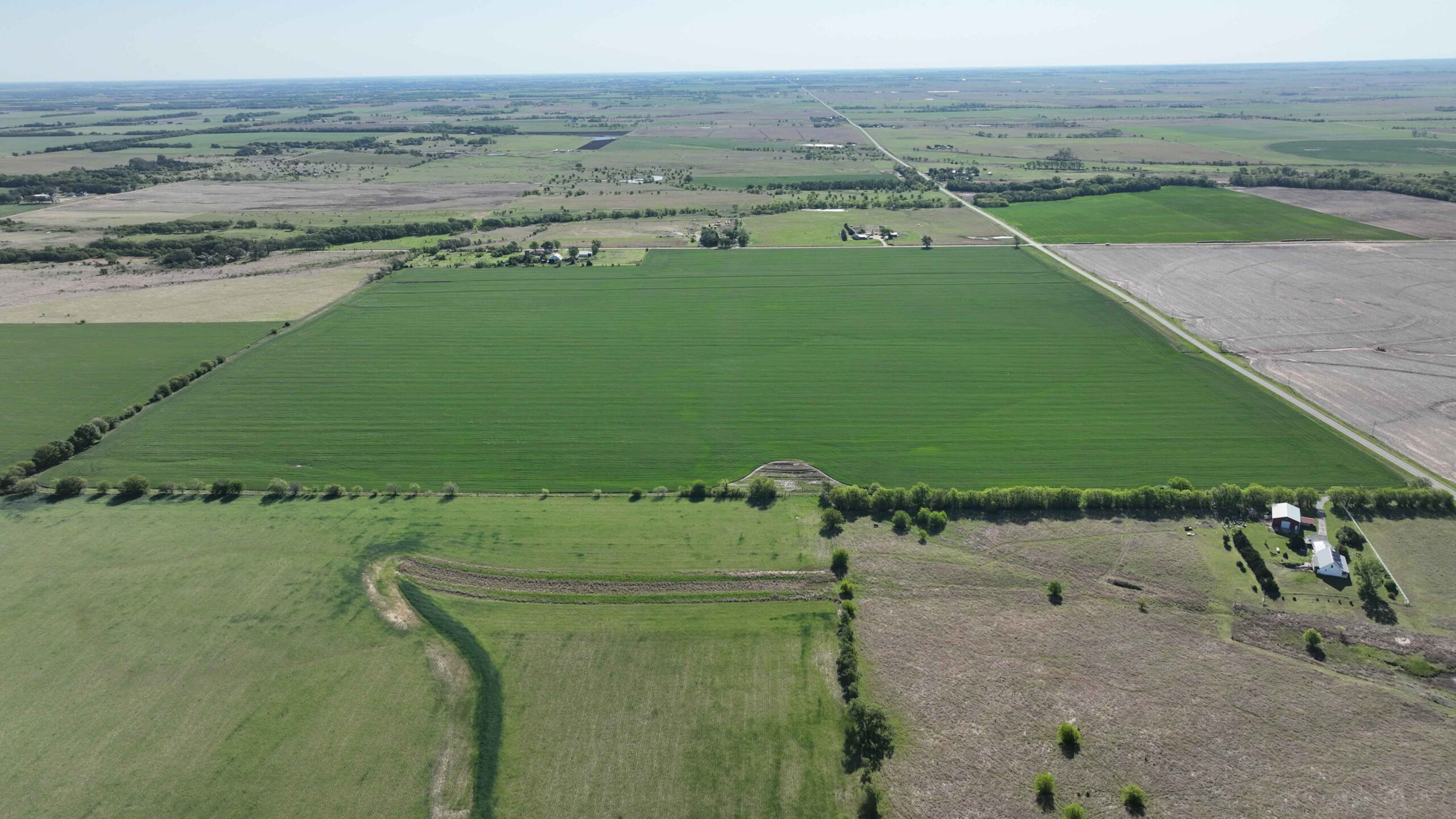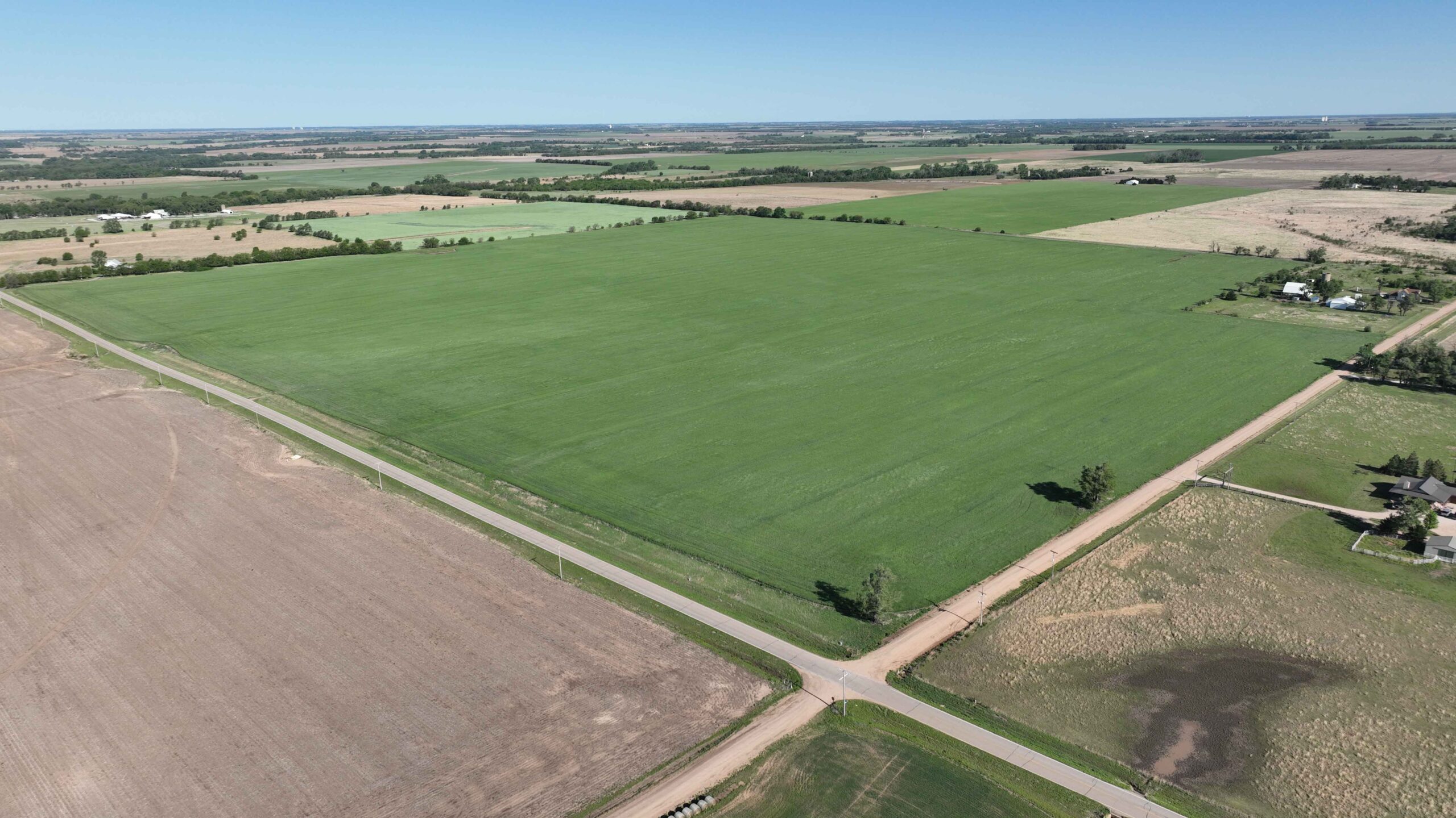 The property features soils suitable for row crop production and a layout that supports efficient farming practices. The NCCPI soil rating is 57.19, with a strong majority of Class II soils, including Shellabarger Sandy Loam, Nalim Loam, and Shellabarger–Nalim Complex. Currently planted to wheat, the tract presents an opportunity to begin a farm operation, expand production, or invest in Kansas farmland.