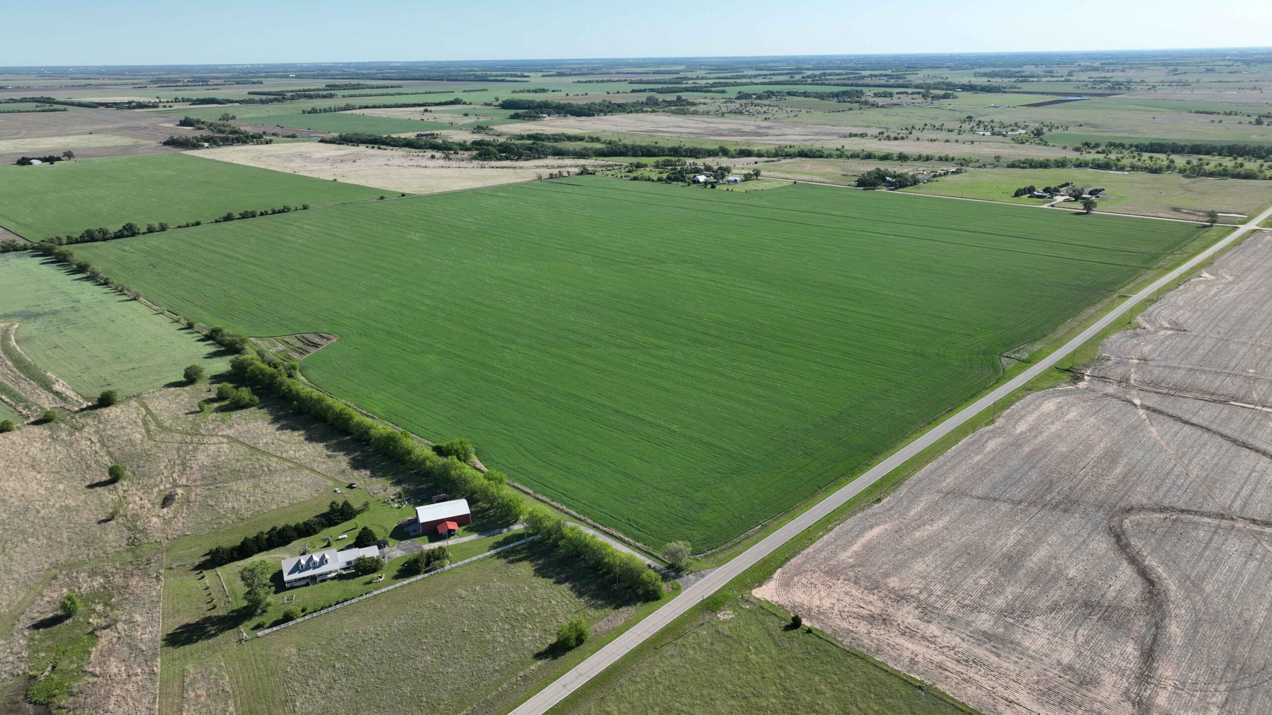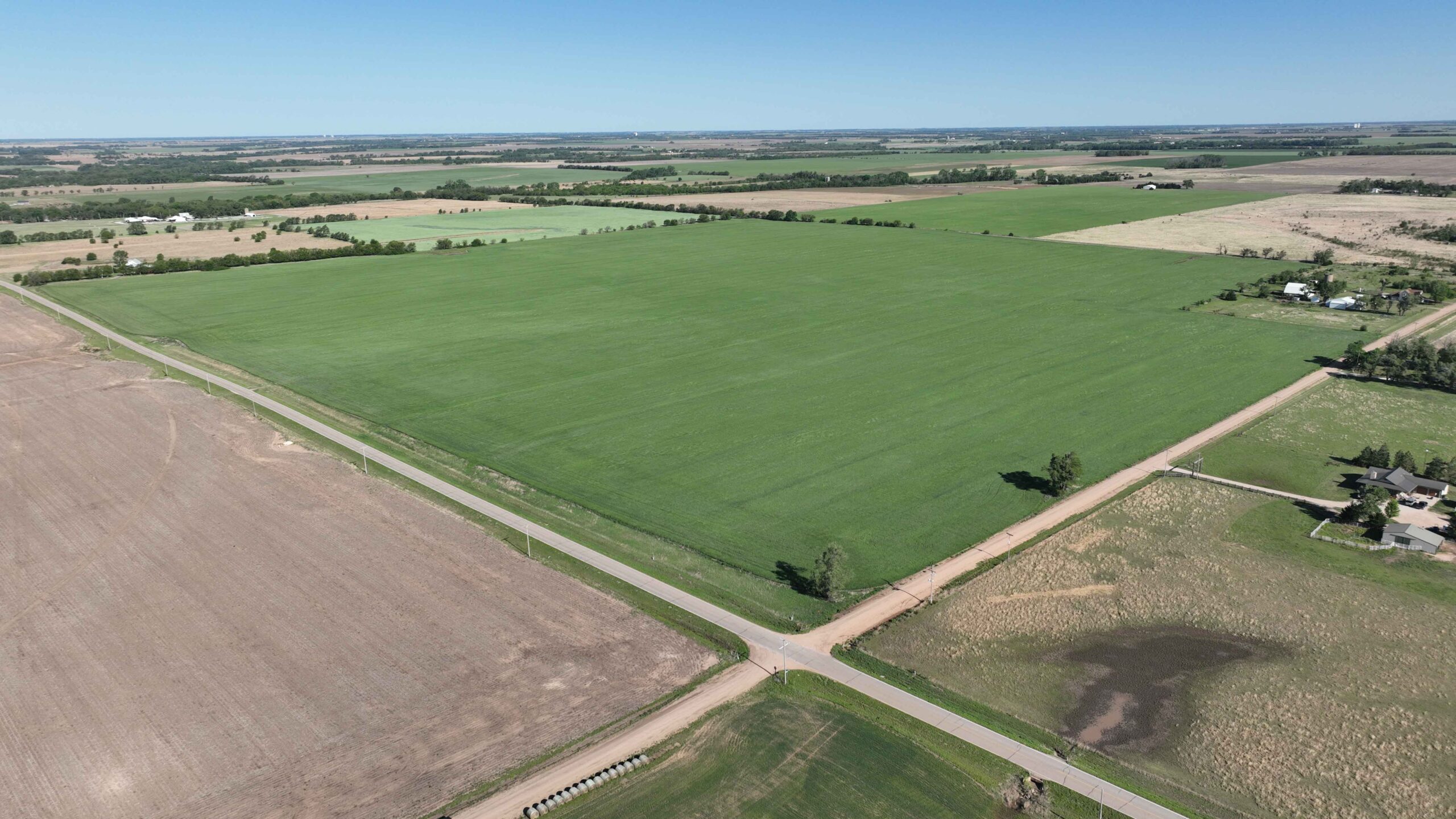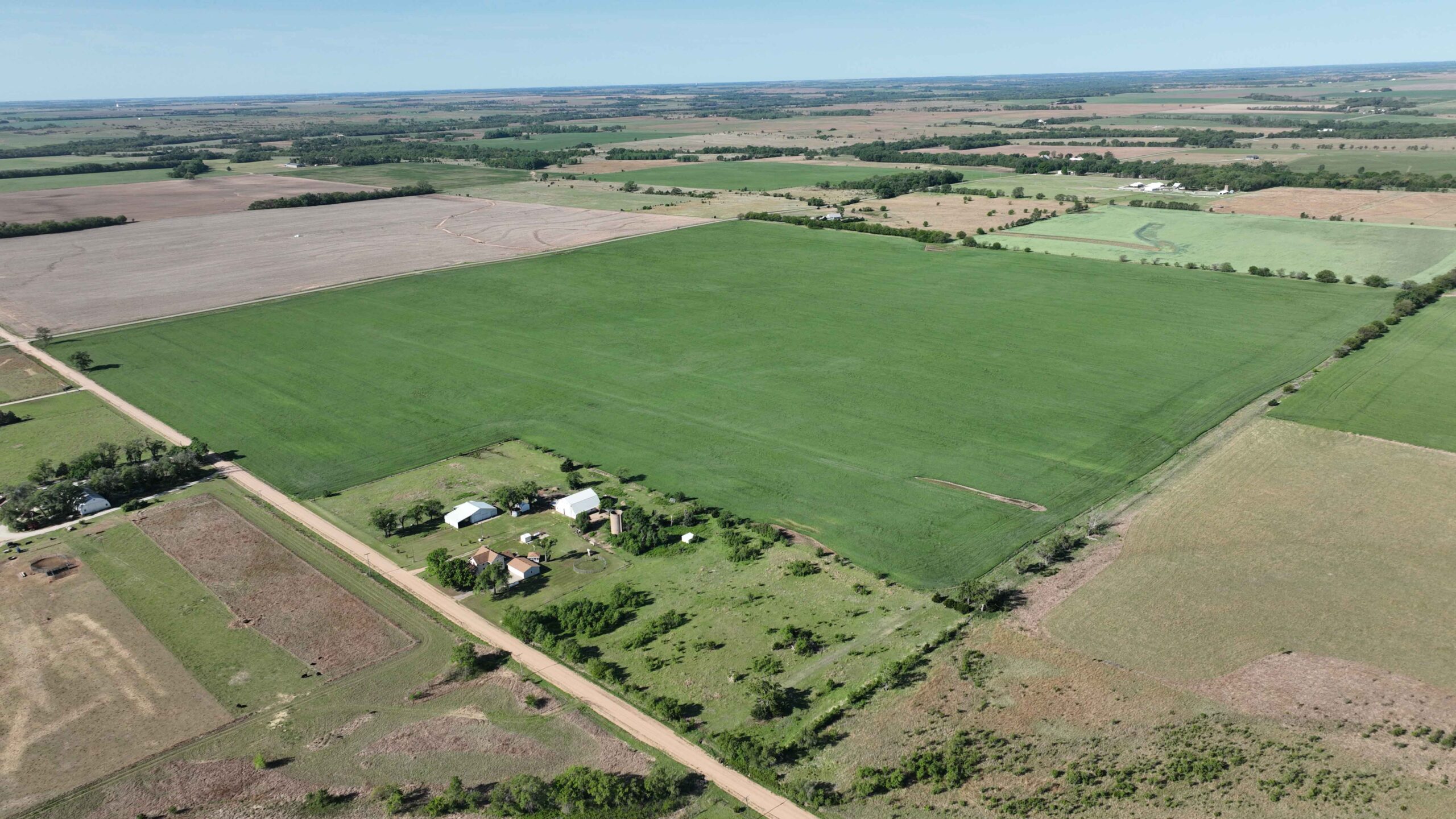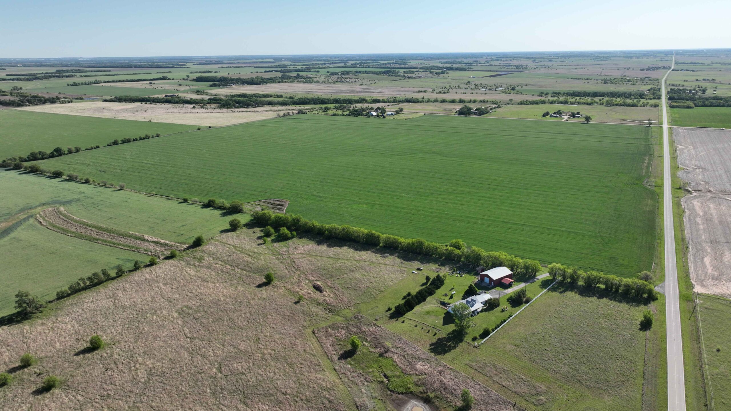 The property features soils suitable for row crop production and a layout that supports efficient farming practices. The NCCPI soil rating is 57.19, with a strong majority of Class II soils, including Shellabarger Sandy Loam, Nalim Loam, and Shellabarger–Nalim Complex. Currently planted to wheat, the tract presents an opportunity to begin a farm operation, expand production, or invest in Kansas farmland.
