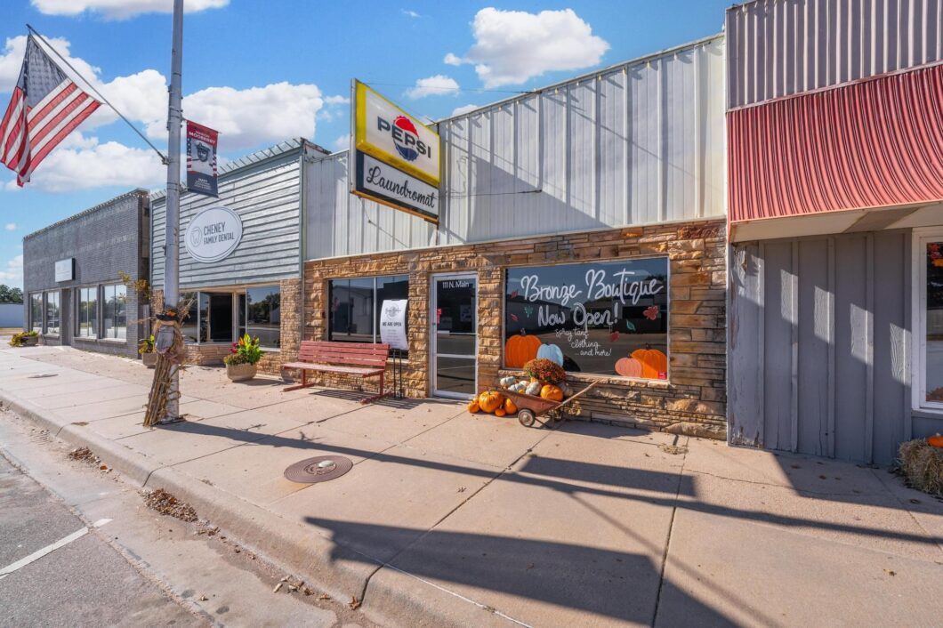 BUSINESS OPPORTUNITY IN CHENEY, KS! For sale is a turn key laundromat with freshly renovated boutique space in the back of the building. The boutique business is moving, so the possibilities are endless for this space. It can be used as office space, hair salon, health spa, art studio, whatever your entrepreneurial heart desires! The laundromat has a new change machine and a new detergent dispenser. New sewer line in 2023 and a new roof in 2024. There is also a half bathroom for customer use. All of the laundry equipment will stay with the building and transfer to the new buyer in its current condition. The laundromat is always open, please enter at reasonable times. The retail space and utility room is open on Wednesday and Thursday from 12-7pm, Friday from 10am-5pm, and Saturday from 10am-2pm. Now is the time to start your new business in Cheney and take over an existing one! MORE PICTURES TO BE ADDED!