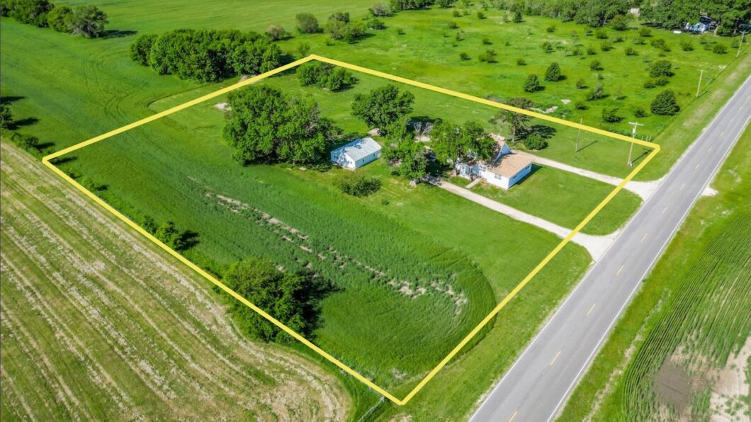 Quaint 1.5-story farmhouse on an estimated 2.5 serene acres with blacktop frontage. This 4-bedroom, 2-bath home offers 2,208 sq. ft. of living space, featuring large bedrooms and a spacious living room. A new A/C unit will be installed prior to closing. The property includes a 32×26 detached garage, ideal for storage or a workshop. Beautiful mature trees provide shade and character, while open fields to the north and south offer scenic views and added privacy. Enjoy peaceful country living with plenty of outdoor space, conveniently located within easy reach of town. Acreage is estimated, and closing will be subject to the seller completing the platting process.