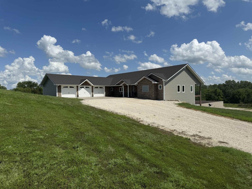 LIVE & ONLINE MULTI-PARCEL LAND AUCTION! Thursday, September 11 at 11:00 AM at Westmoreland Community Center, 201 Main St., Westmoreland, KS. Online bidding at Gavel Roads website. ** An extraordinary, private retreat just 25 minutes from Manhattan, KS, off Hwy 16. This high-quality custom home is nestled on 12+/- secluded acres and offers over 5,600 sq ft of exceptional living space. Built with energy efficiency and durability in mind, the home features insulated concrete form (ICF) construction, a geothermal system, and a stone-coated steel shingled roof. The stone-accented driveway sets the tone for the impressive features that await—sprawling covered back deck with maintenance-free decking and wood-accent ceiling, an in-ground saltwater pool with new liner, auto cover, and pump, plus a stone fireplace, built-in stucco seating wall, stamped concrete patio, and a fully stocked pond just beyond. Inside, you’ll find vaulted ceilings, formal dining, CWP cabinetry, granite countertops, a walk-in pantry, porcelain tile flooring, and a luxurious master suite with dual closets and vanities, a tiled shower, and jetted tub. The expansive lower level includes a wet bar and walks out to the backyard oasis. A 50×80 shop with electric and plumbing completes the property. **In addition to the home site, 68± acres of scenic land will be offered, featuring 16± acres of cultivation and 52± acres of hay meadow, timber, creek and natural wildlife habitat. Deer and turkey are regular visitors. Whether you’re looking for a future home site, hunting ground, recreational retreat, or continued agricultural use, this property offers a wealth of opportunity. A tenant currently has sorghum planted for silage, and the hay meadow is scheduled to be baled. The seller will receive cash rent for the 2025 crop year, and tenant rights will remain in place until year end. Electricity and fiber optic are available on site, enhancing its appeal for both development and rural living. Buyers should contact Pottawatomie County Planning & Zoning for regulations related to building or development, and Pottawatomie County Rural Water District #3 or a licensed well driller for information on water resources.**Buyers can bid on this home with 12± acres, 68± acres (RSCK MLS #659999), or the entire property!*Rarely does a property offer such a combination of quality, privacy, and potential—don’t miss your chance!