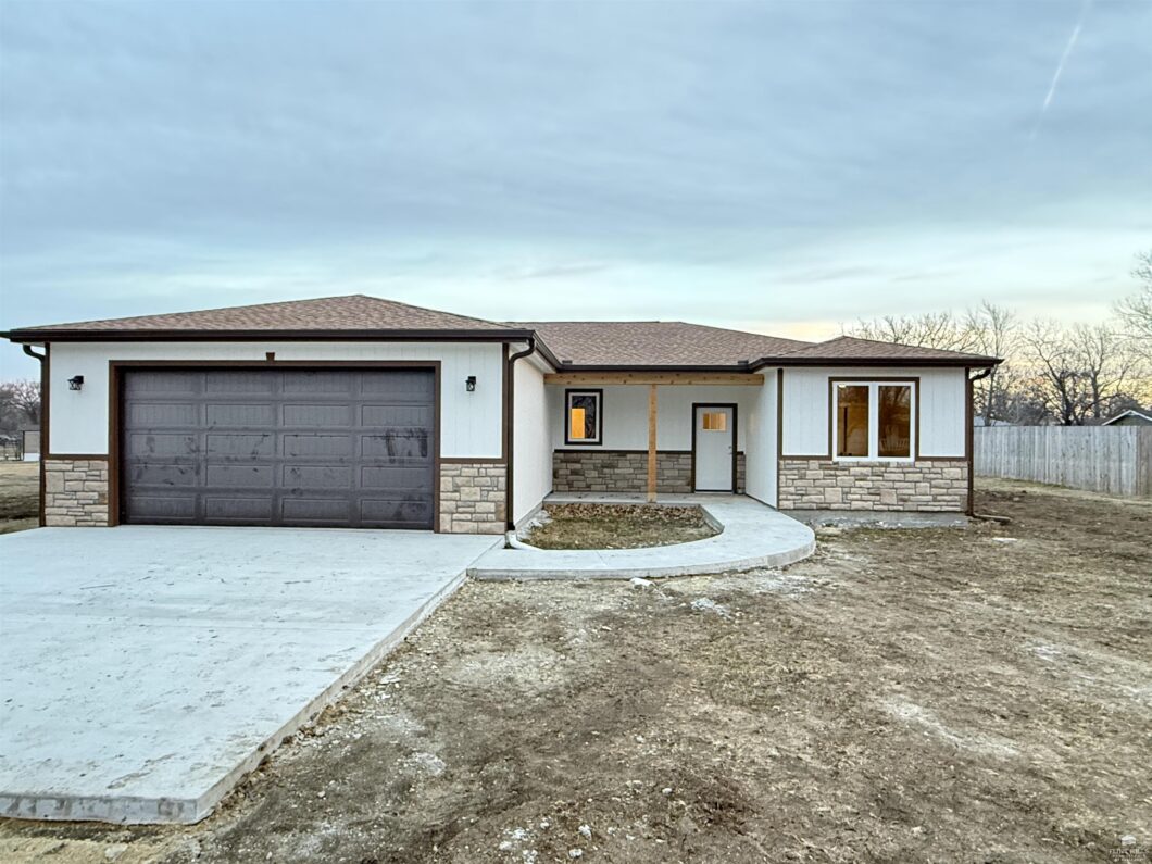 WELCOME TO LEONARDVILLE!! Second new construction with NO SPECIALS OR HOA’S by RnR Construction. This 1,500 sq ft ranch offers a perfect balance of style and function—3 bedrooms and 2 bathrooms. The open concept main living area showcases 9 ft ceilings with a kitchen featuring a pantry, stainless steel appliances, and stylish finishes. The primary suite includes a private bath and a large walk in closet. Two car garage provides abundant storage. One year builder warranty included. Don’t miss out!! Estimated completion date: 12/22/2025. Inquire with Lori Rogge, Broker, 785-556-7162